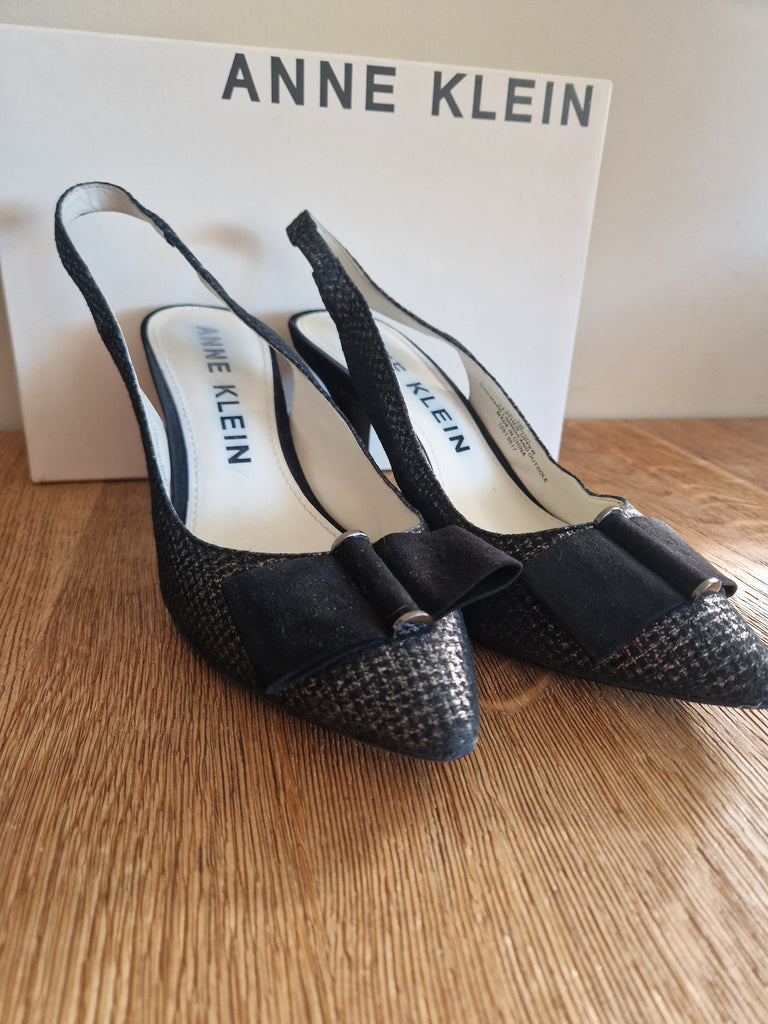 Anne Klein Black Leather Yannah Slingback Heal - Uk size 5 ( labelled US size 7 )