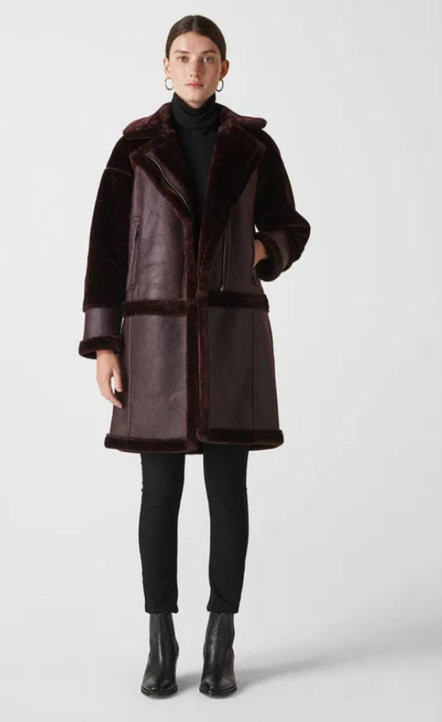 Whistles longline Faux Fur Burgundy Biker Jacket - small