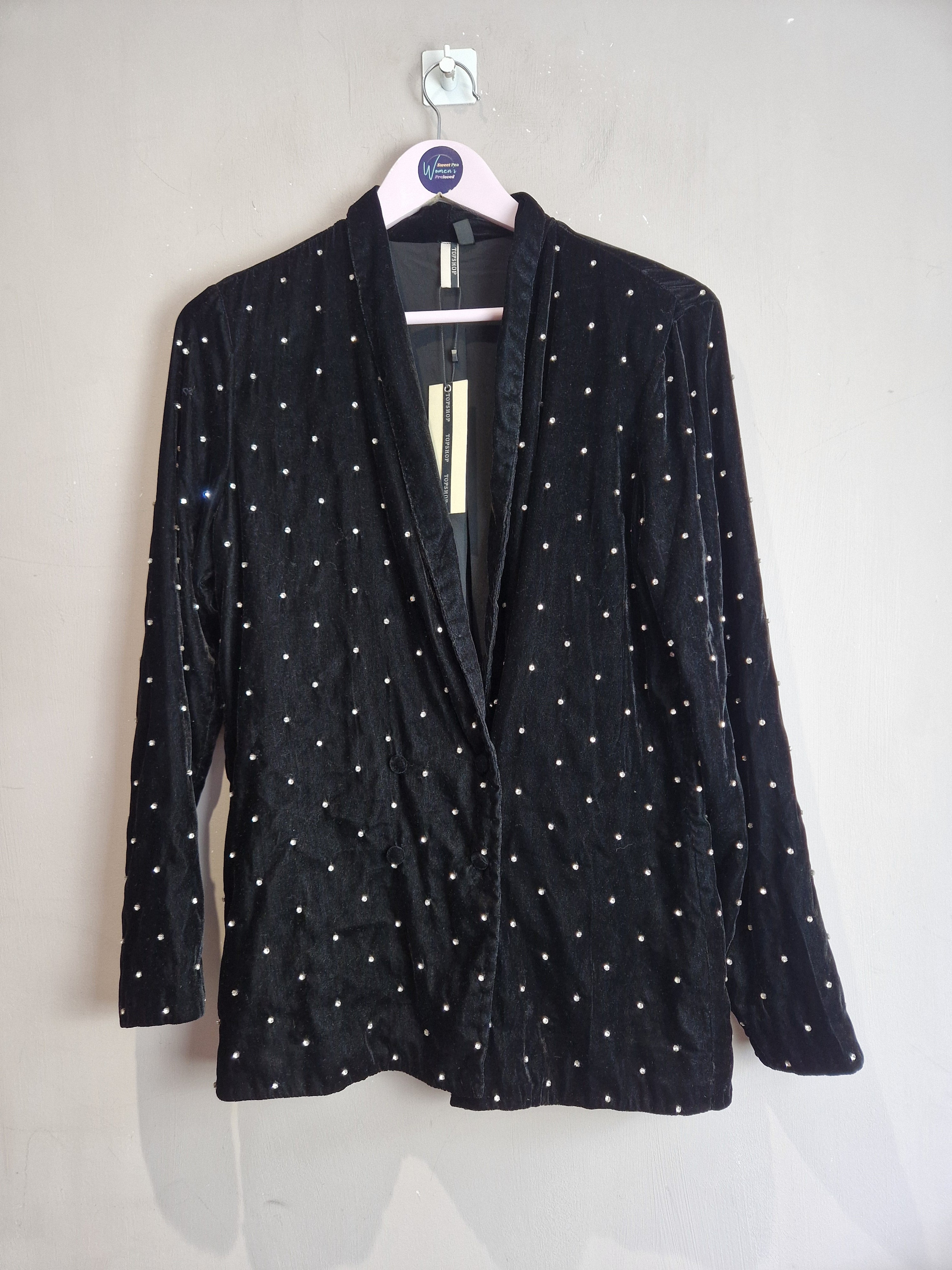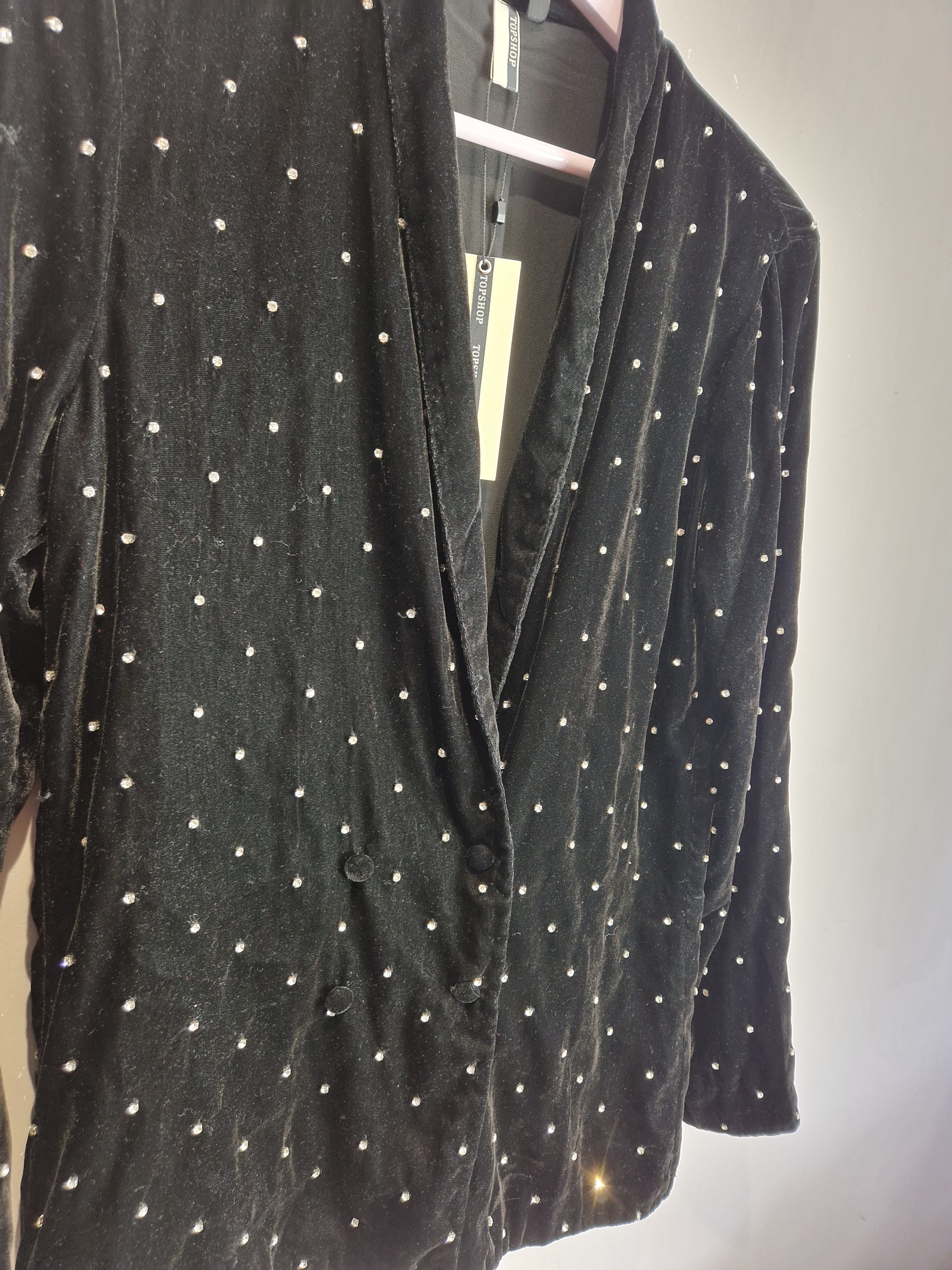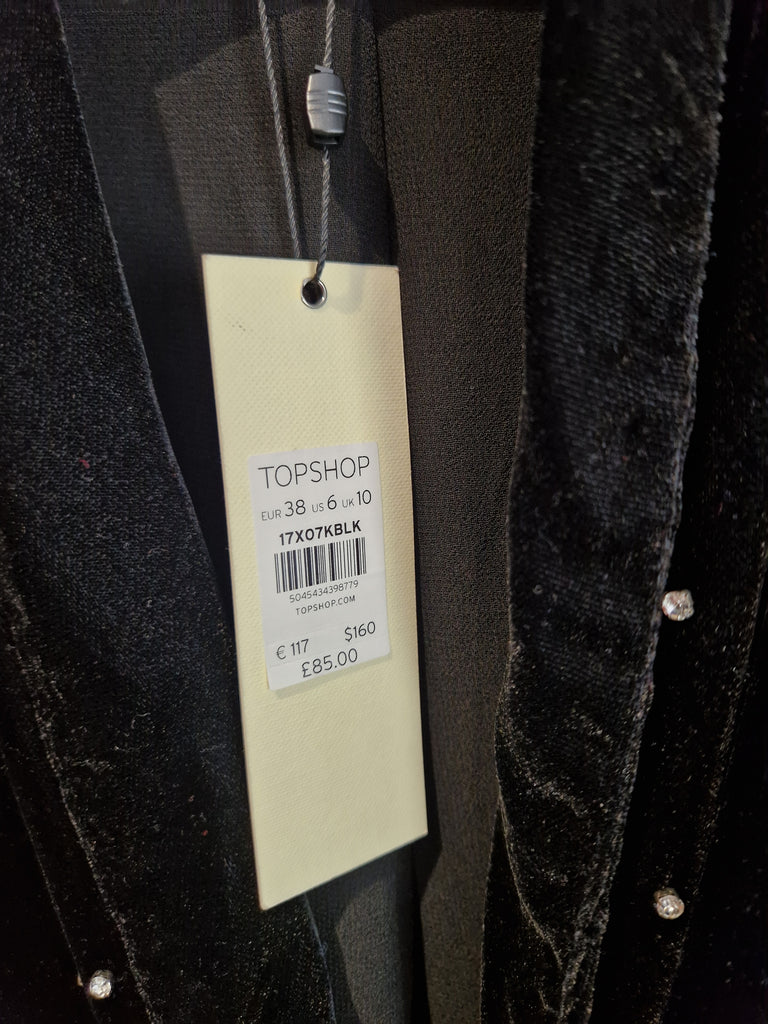 Topshop black diamante studded velvet blazer NEW - Size 10 is backordered and will ship as soon as it is back in stock.