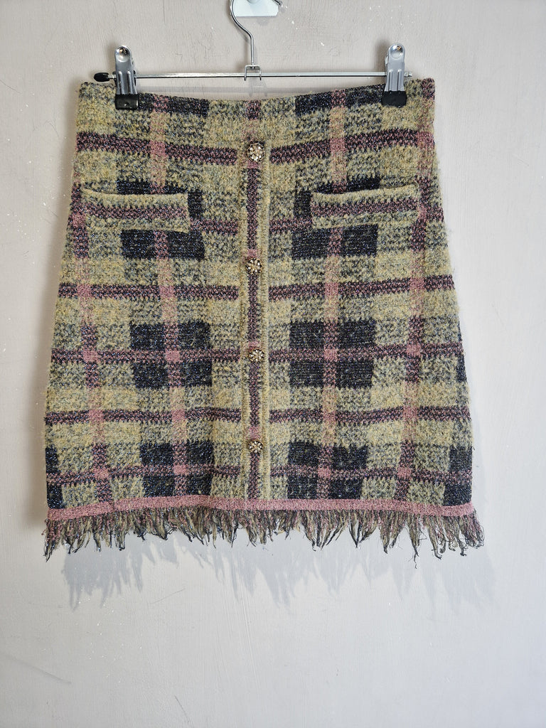 GANNI Ruffled collar blue check cotton / silk blend dress - EUR 38 (size 10 )
