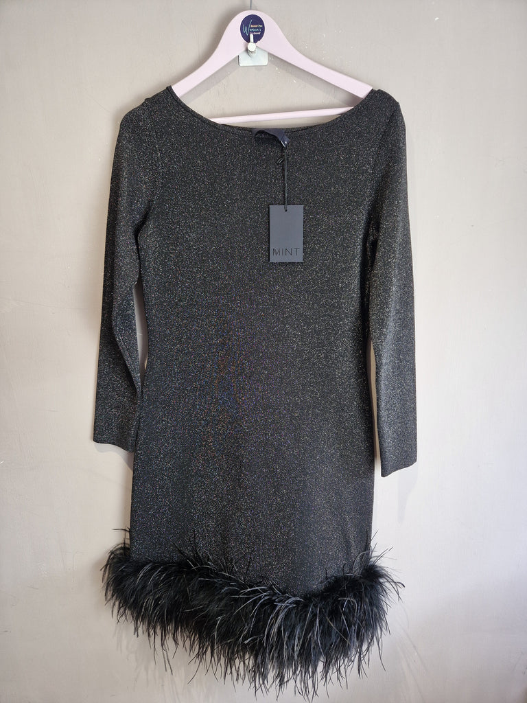 Mint Velvet black & silver sparkle feather metallic dress - Medium
