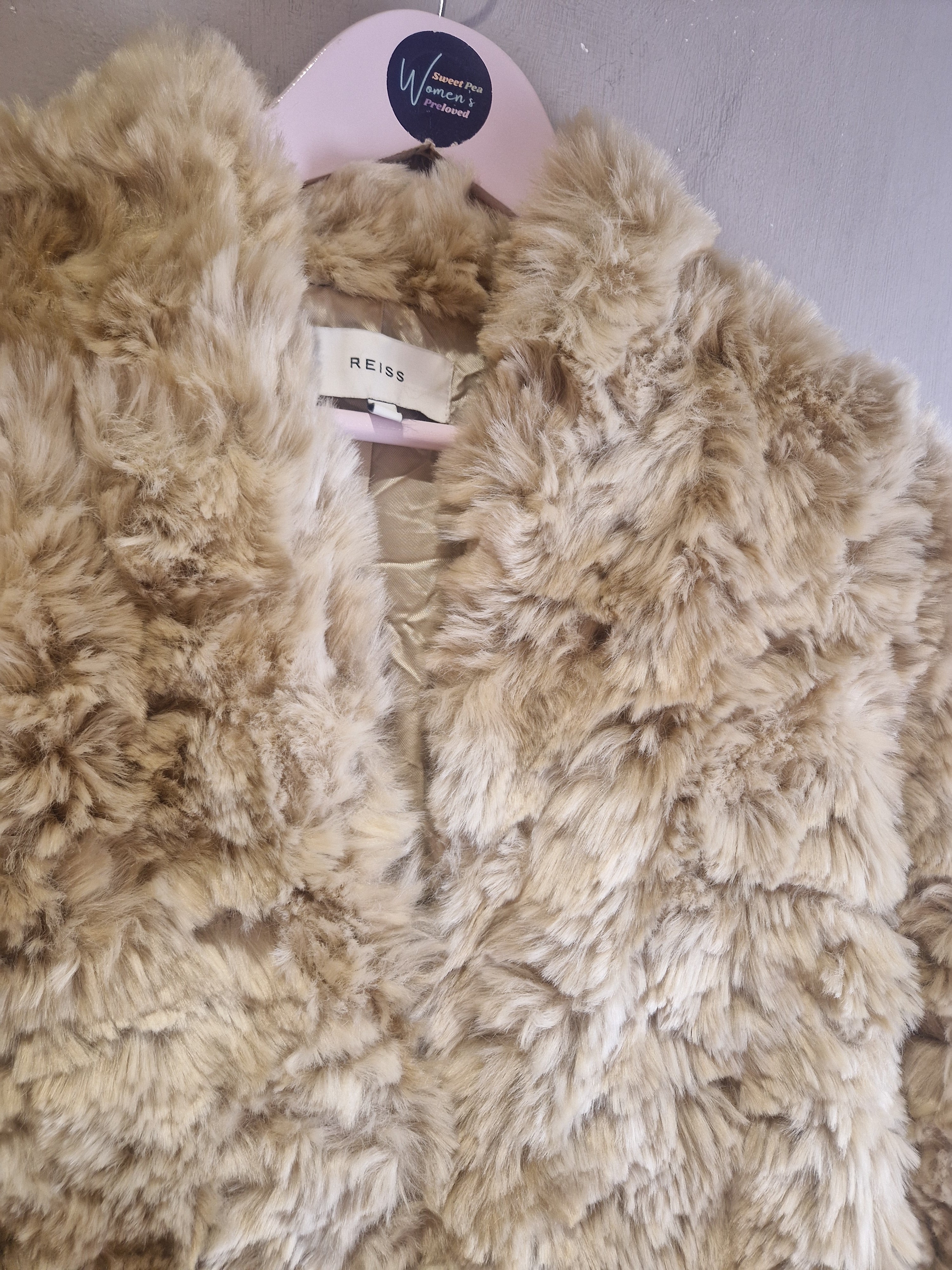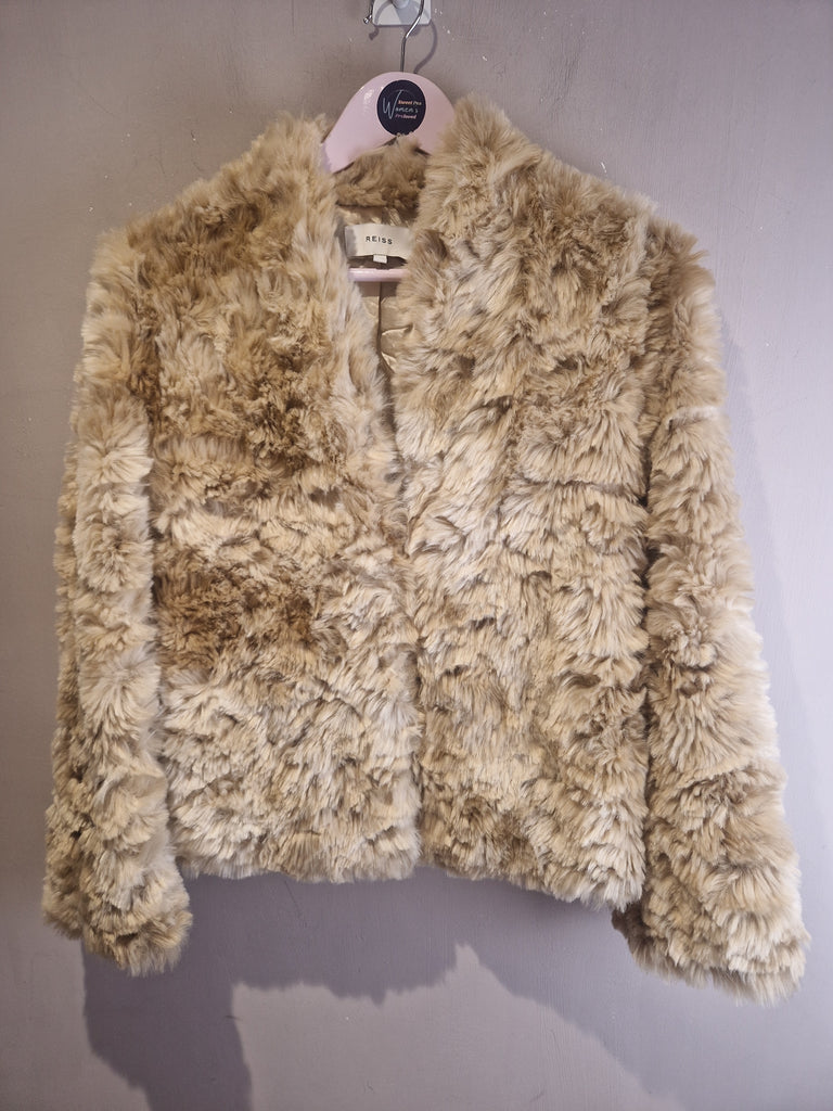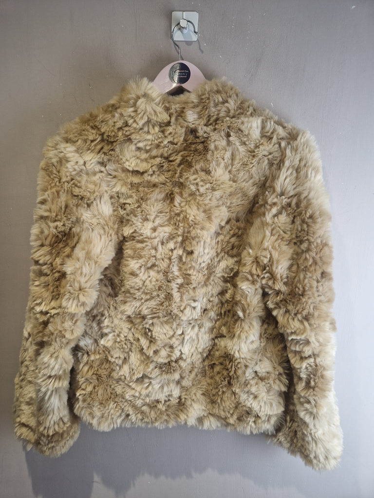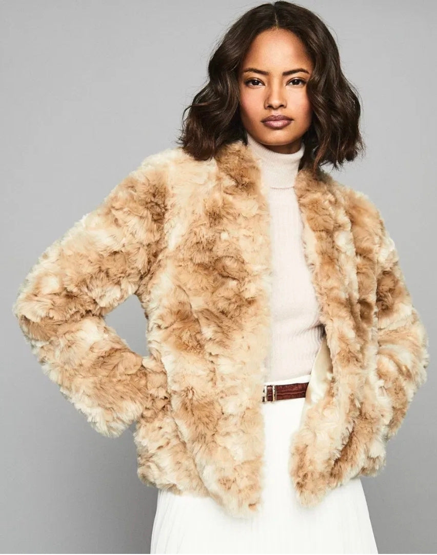 Crafted from faux fur that's supremely soft to the touch. Layer the cropped silhouette atop a fine knit and skinny leather trousers for a rich clash of fabrics.