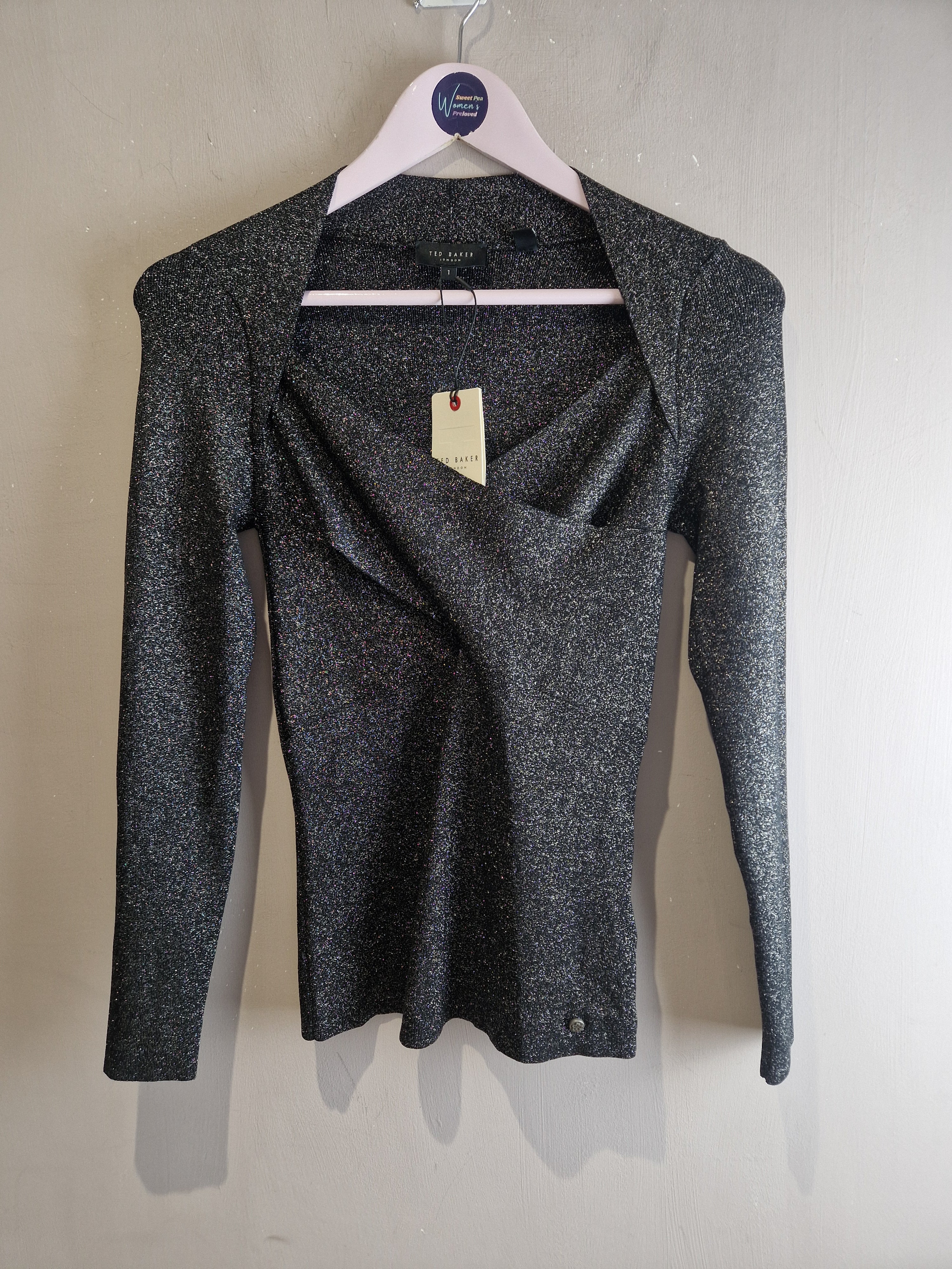 Ted Baker slim fit sparkle cross over top NEW - Ted size 1 - size 8 is backordered and will ship as soon as it is back in stock.