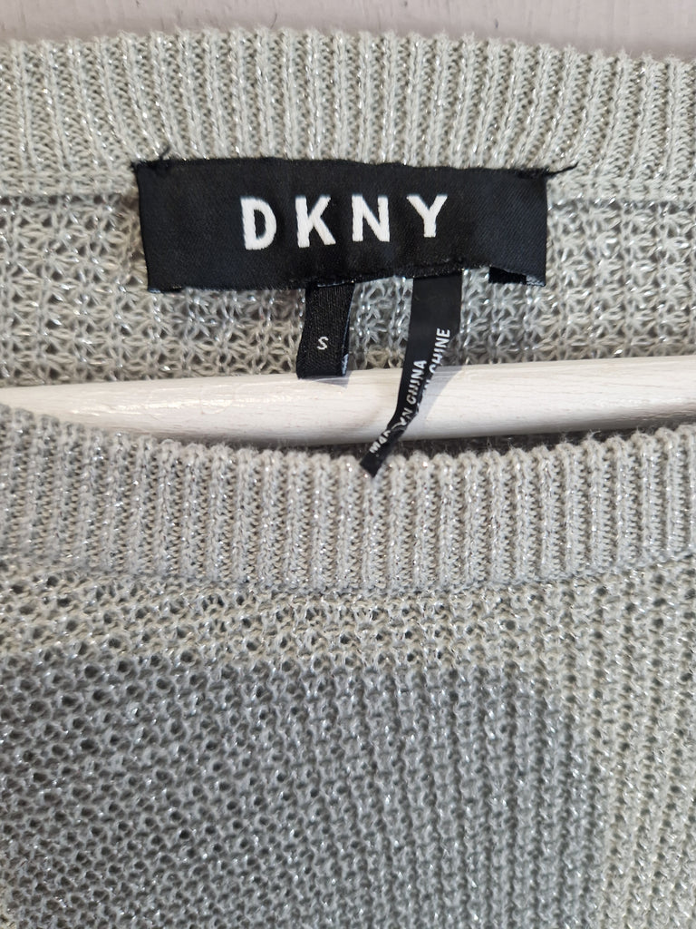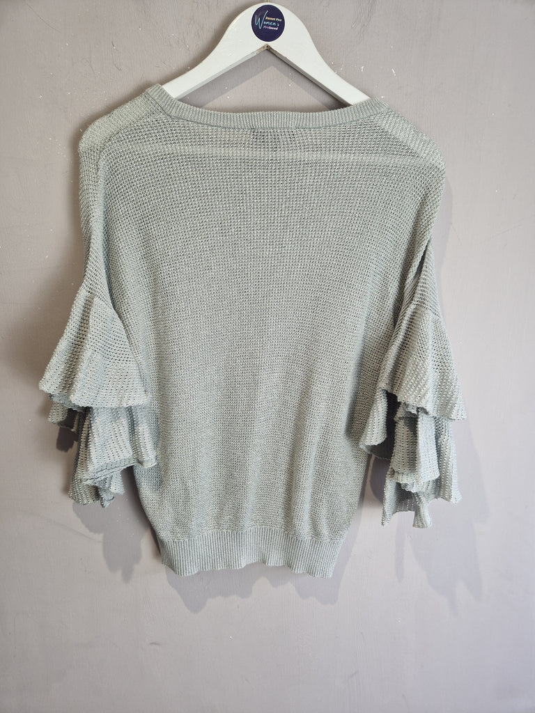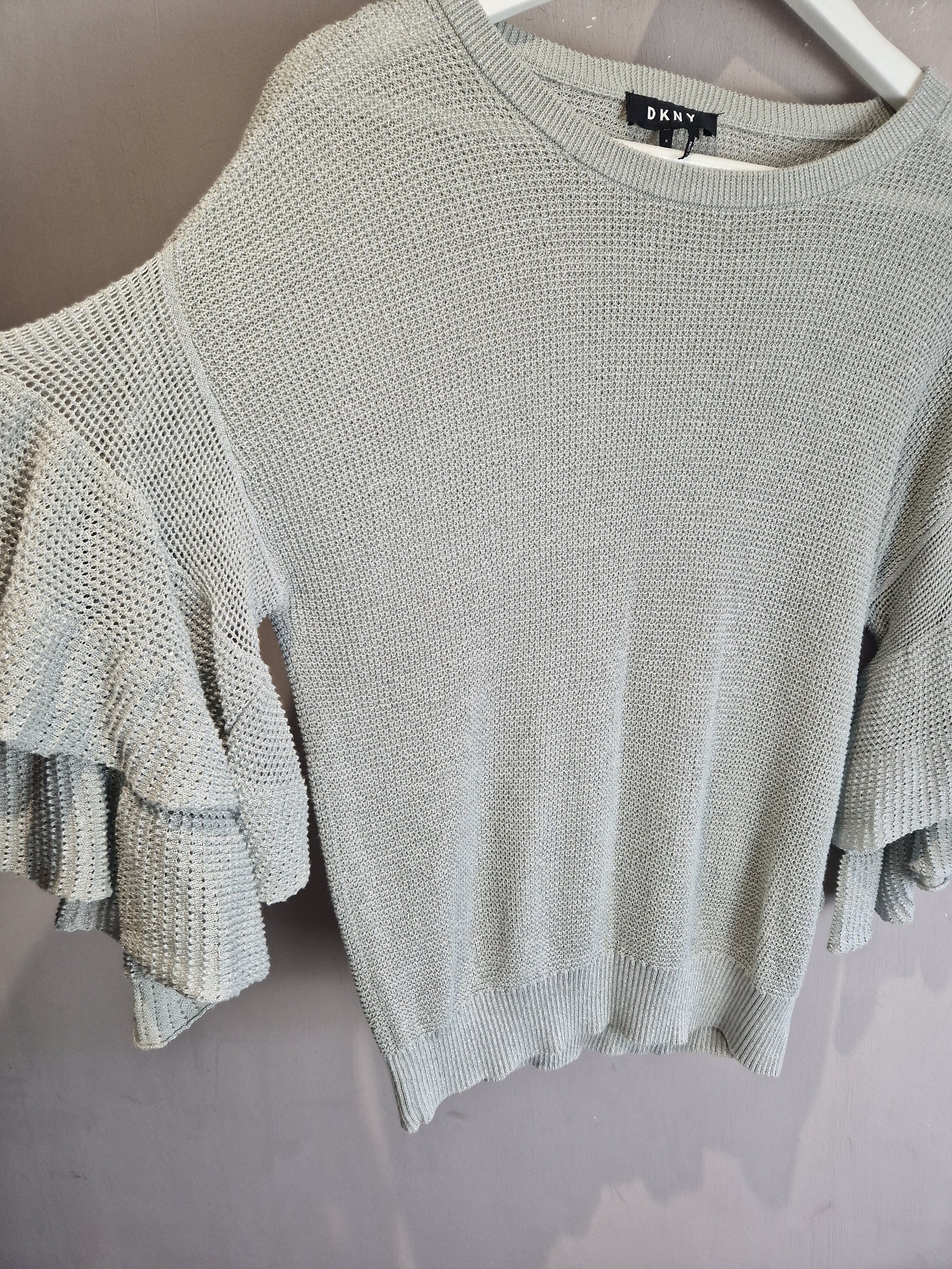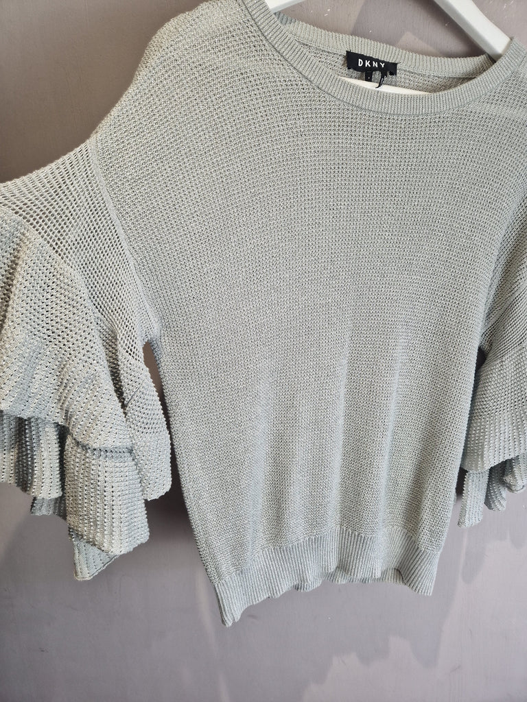 DKNY silver frill sparkly knitted top - small (8-10)