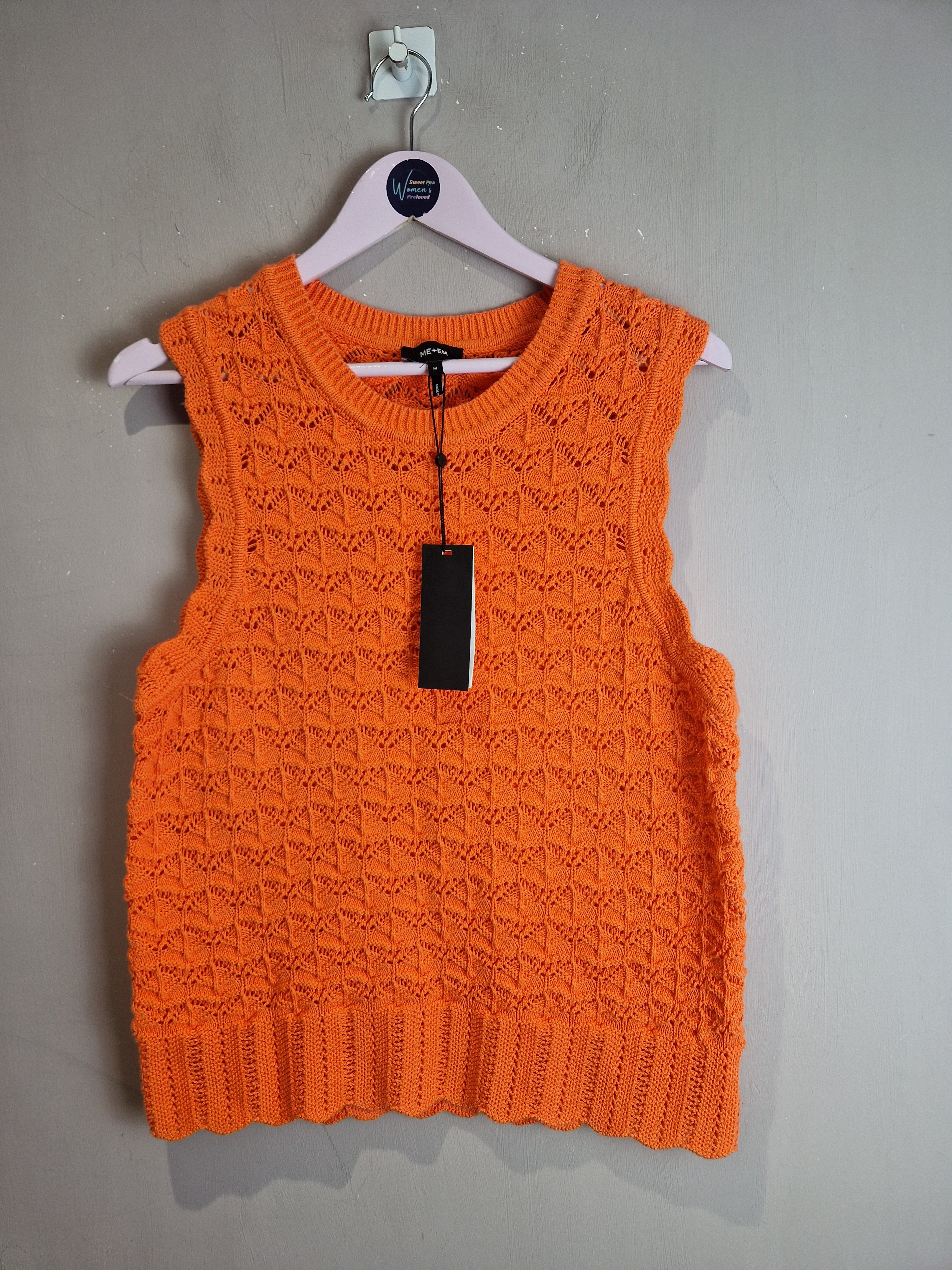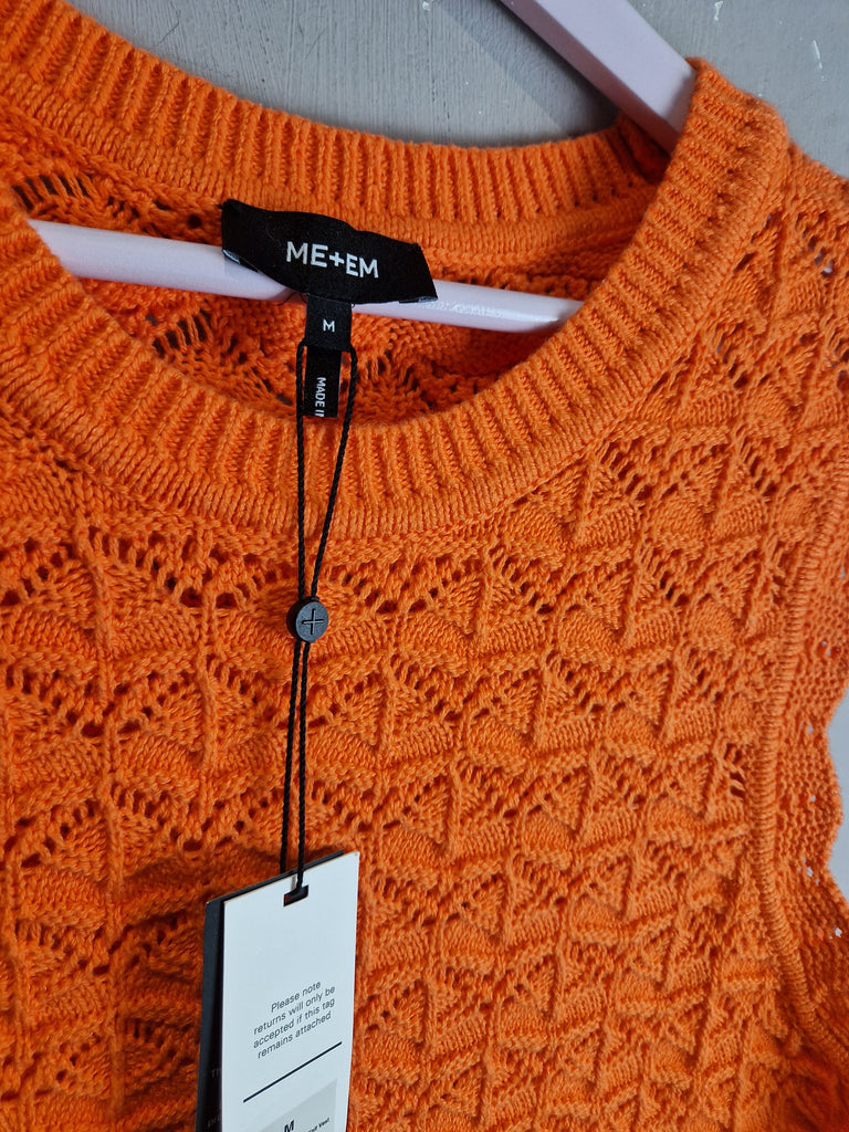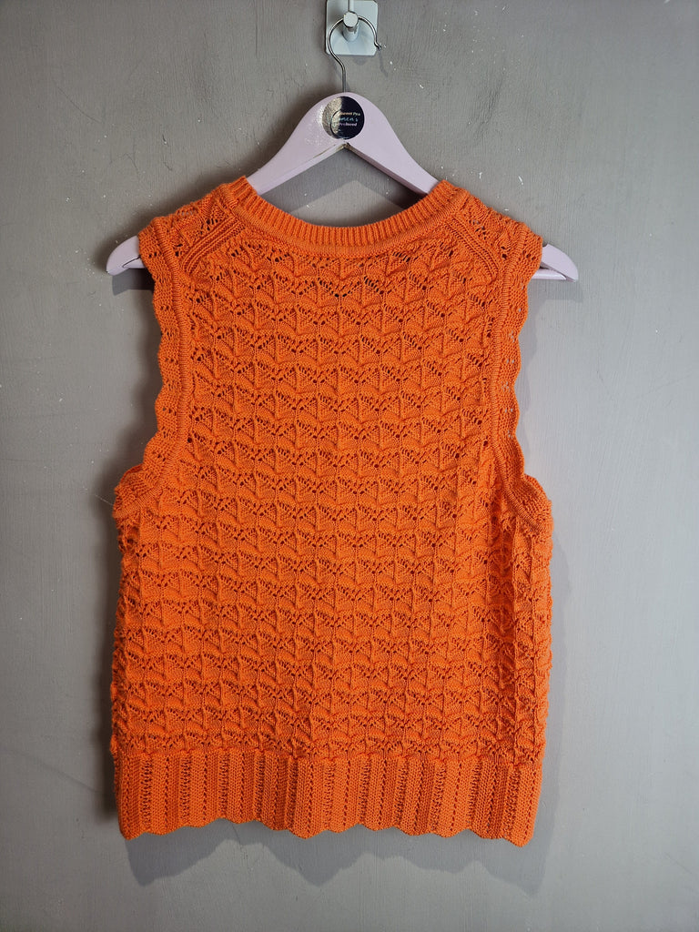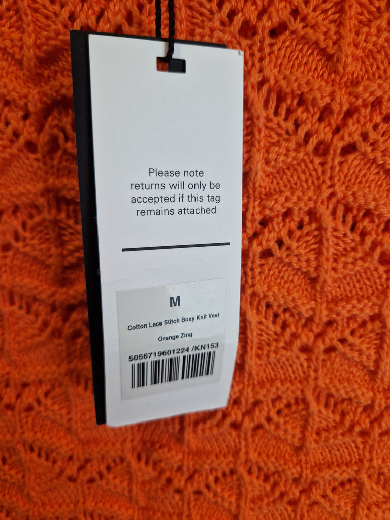 ME+EM Orange Zing cotton lace stitch boxy knitted vest NEW - Size Medium is backordered and will ship as soon as it is back in stock.