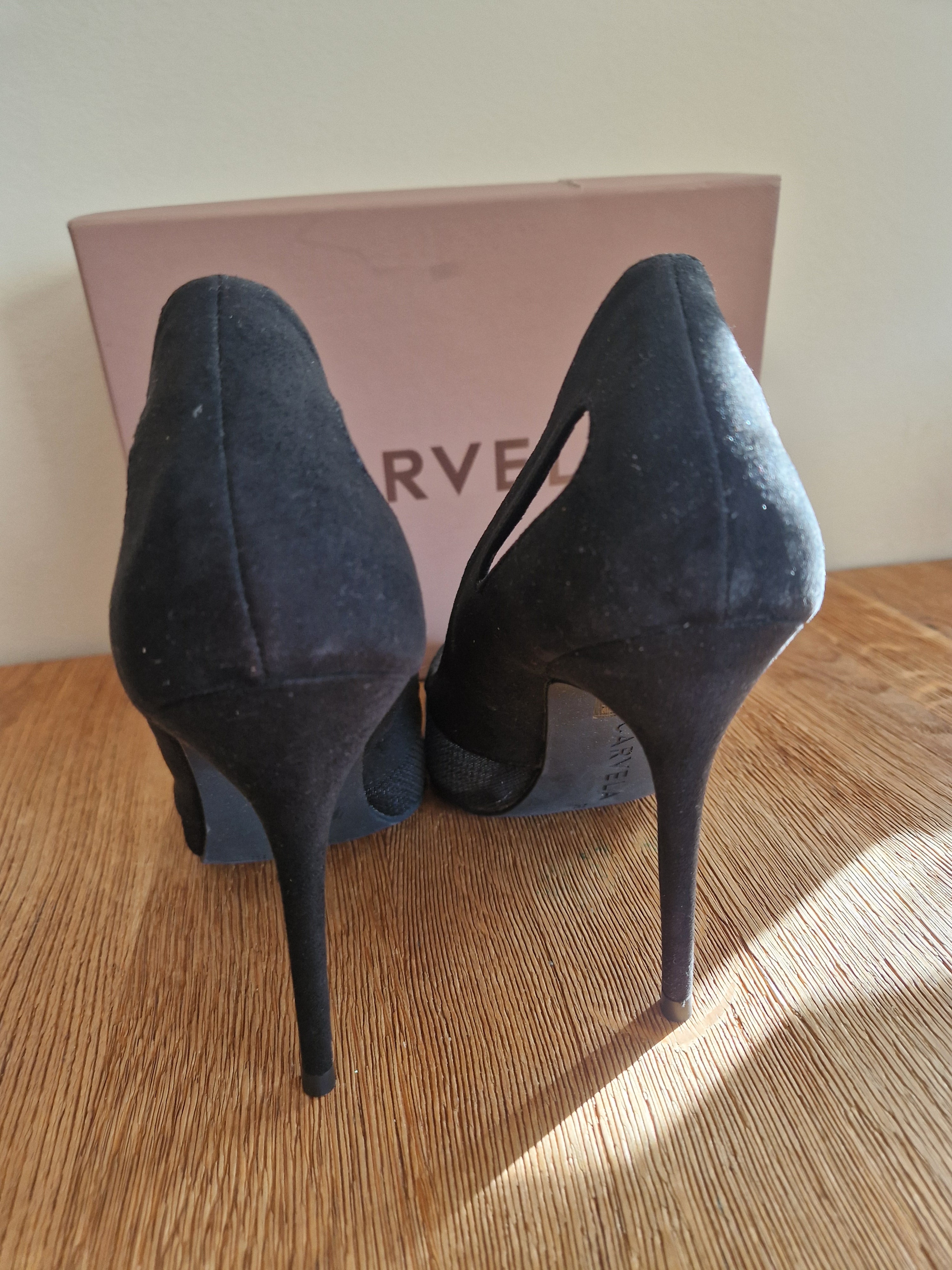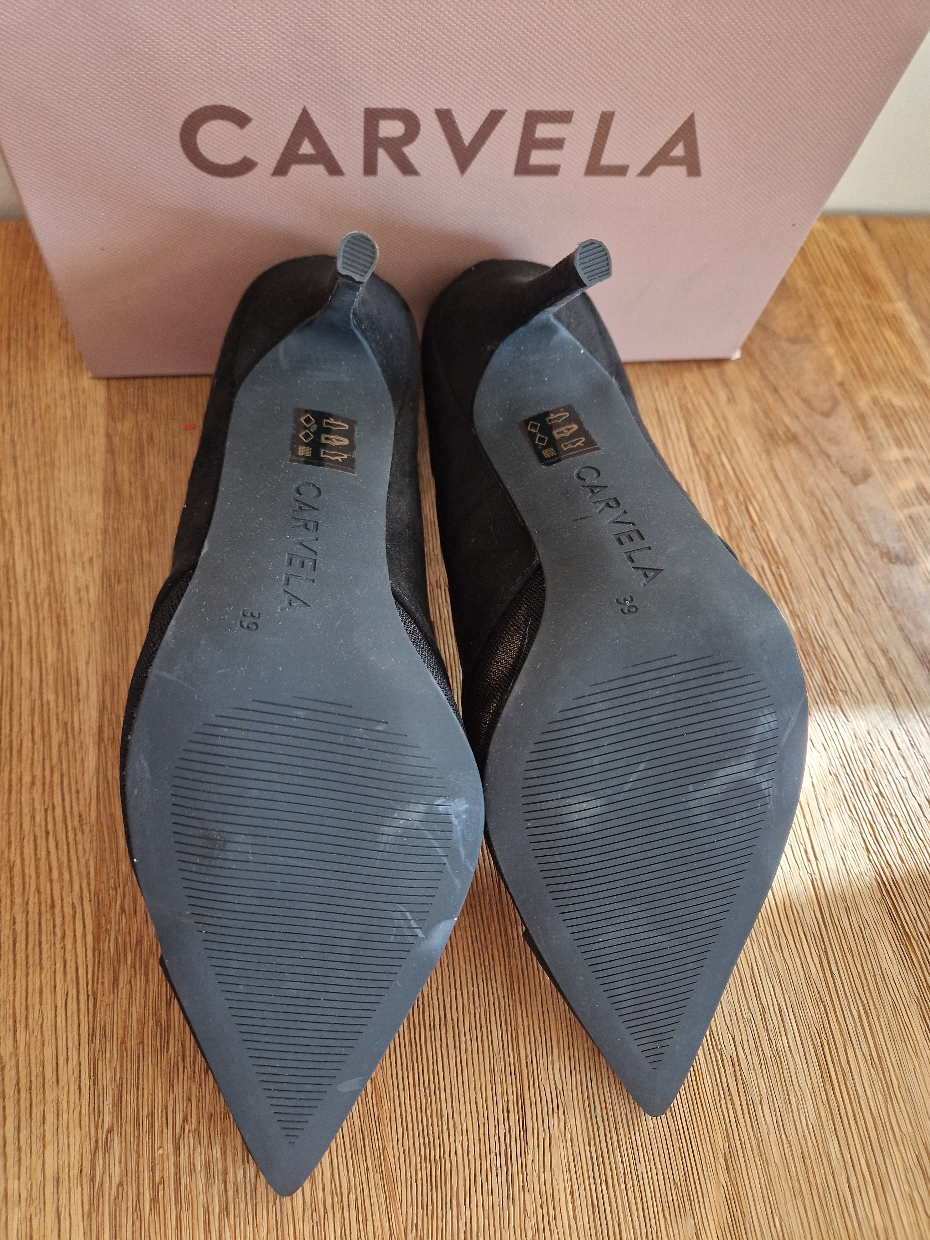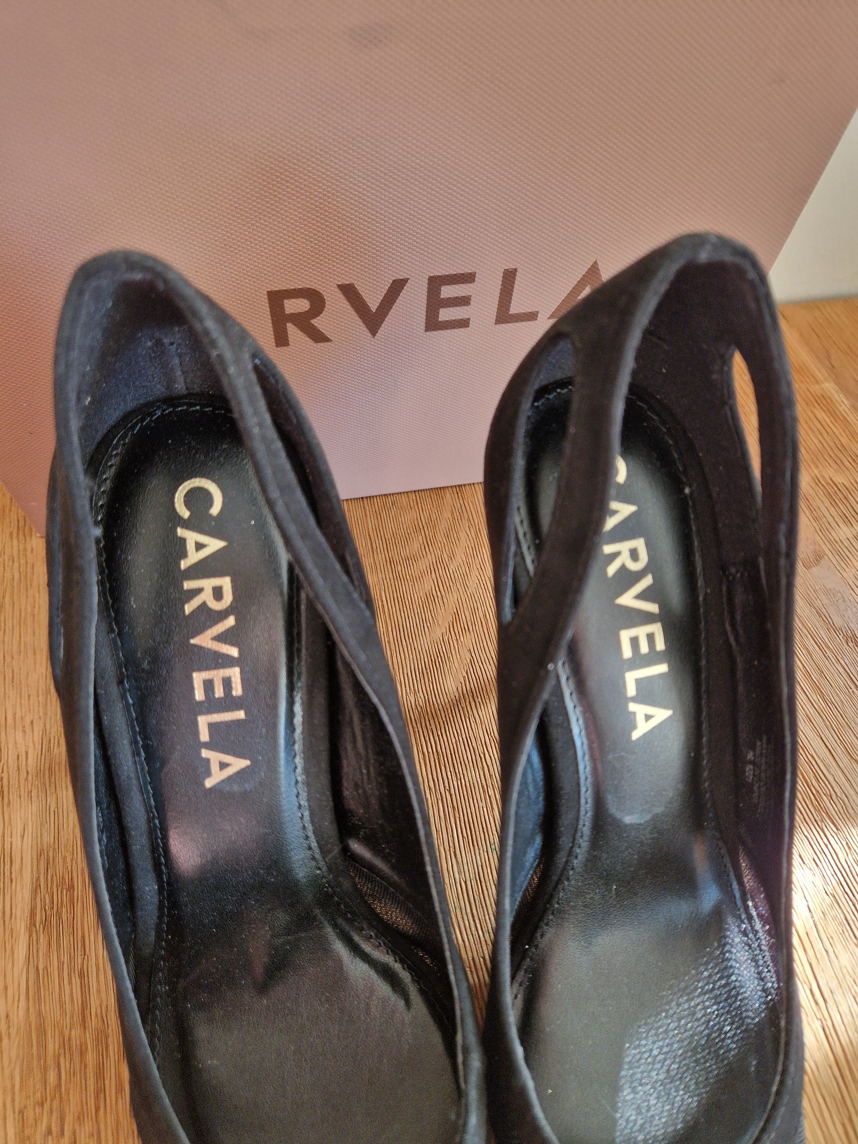 Carvella black suede and mesh stiletto NEW - size 6 is backordered and will ship as soon as it is back in stock.
