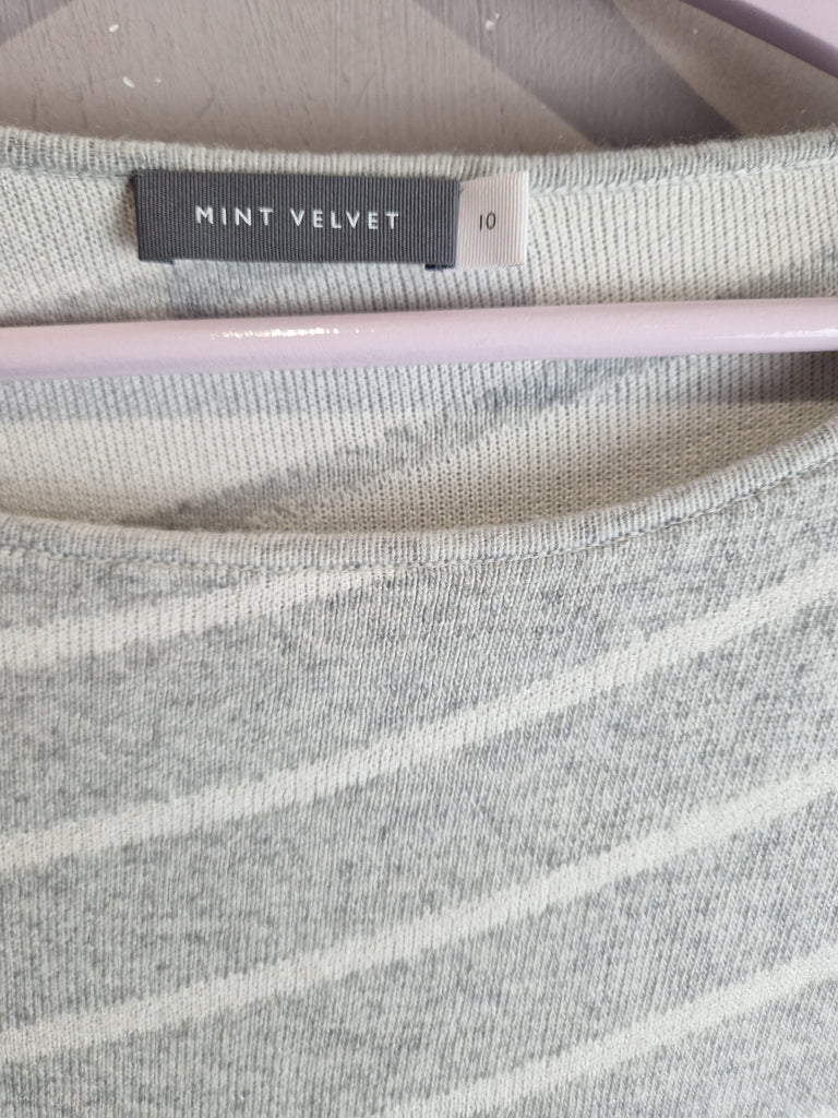 Mint Velvet grey striped jumper - size 10 is backordered and will ship as soon as it is back in stock.