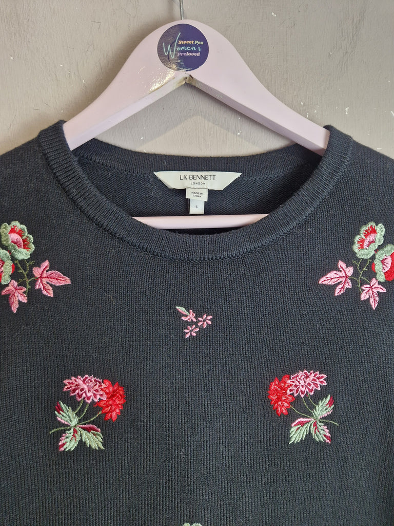 LK bennet black embroidered jumper - small is backordered and will ship as soon as it is back in stock.