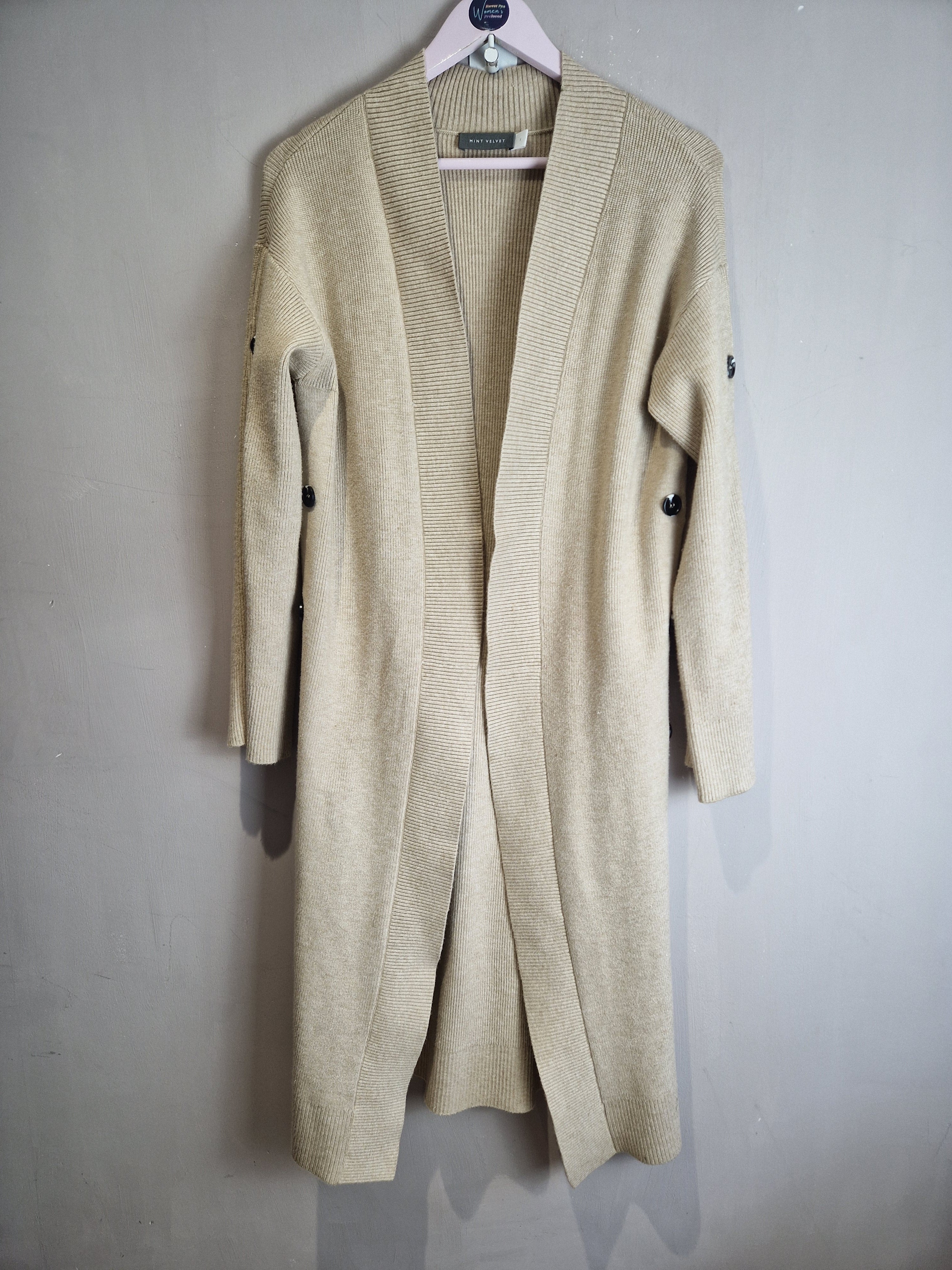 Mint Velvet long oatmeal cardigan with button detail - small is backordered and will ship as soon as it is back in stock.