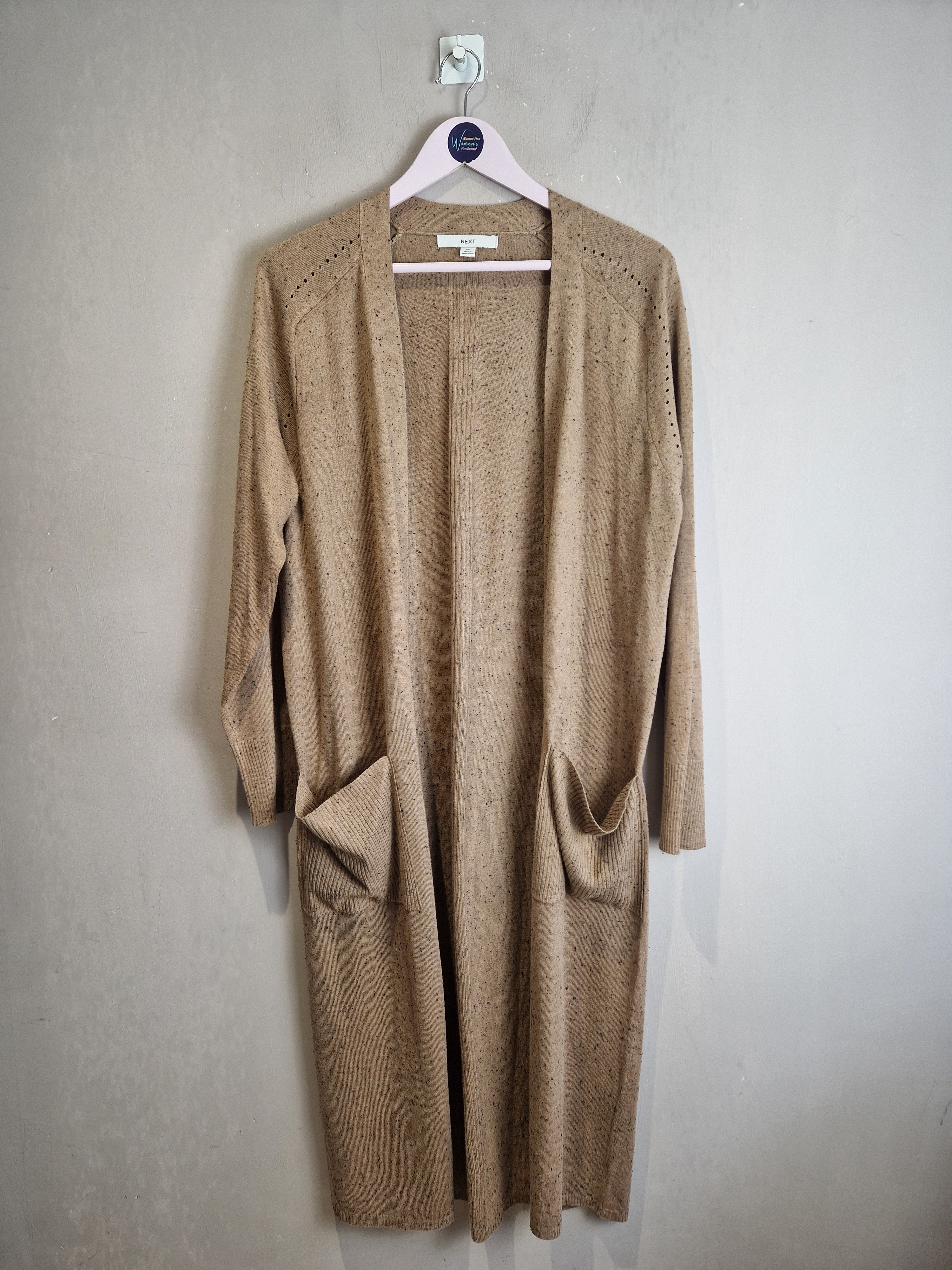Next brown speckled lightweight long cardigan - Medium 10-12 is backordered and will ship as soon as it is back in stock.