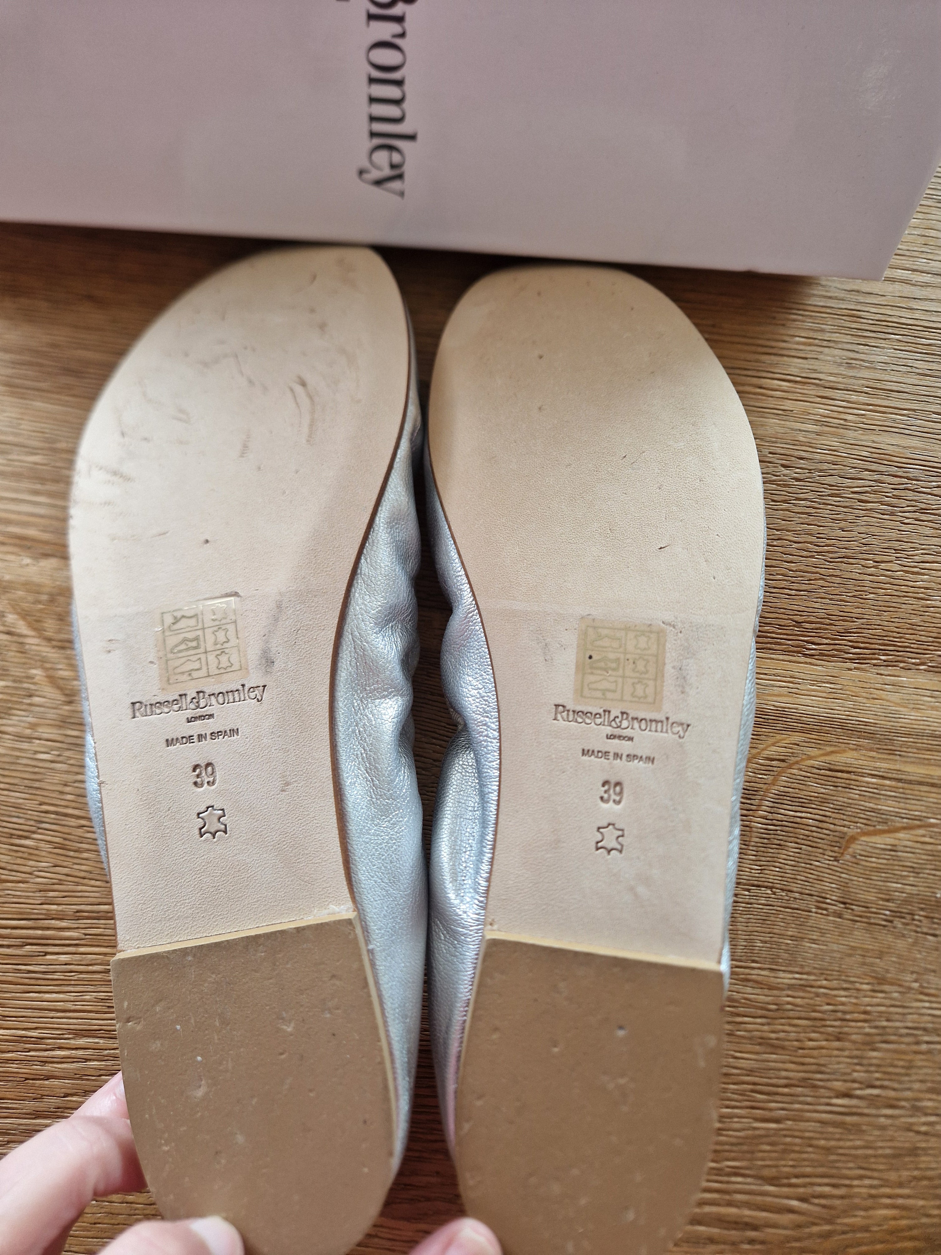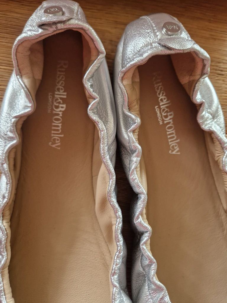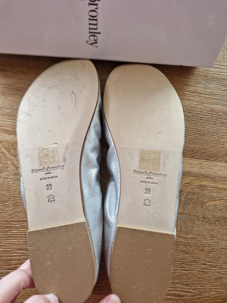 Russell & Bromley silver leather ballet pumps - size 6 eur 39 is backordered and will ship as soon as it is back in stock.