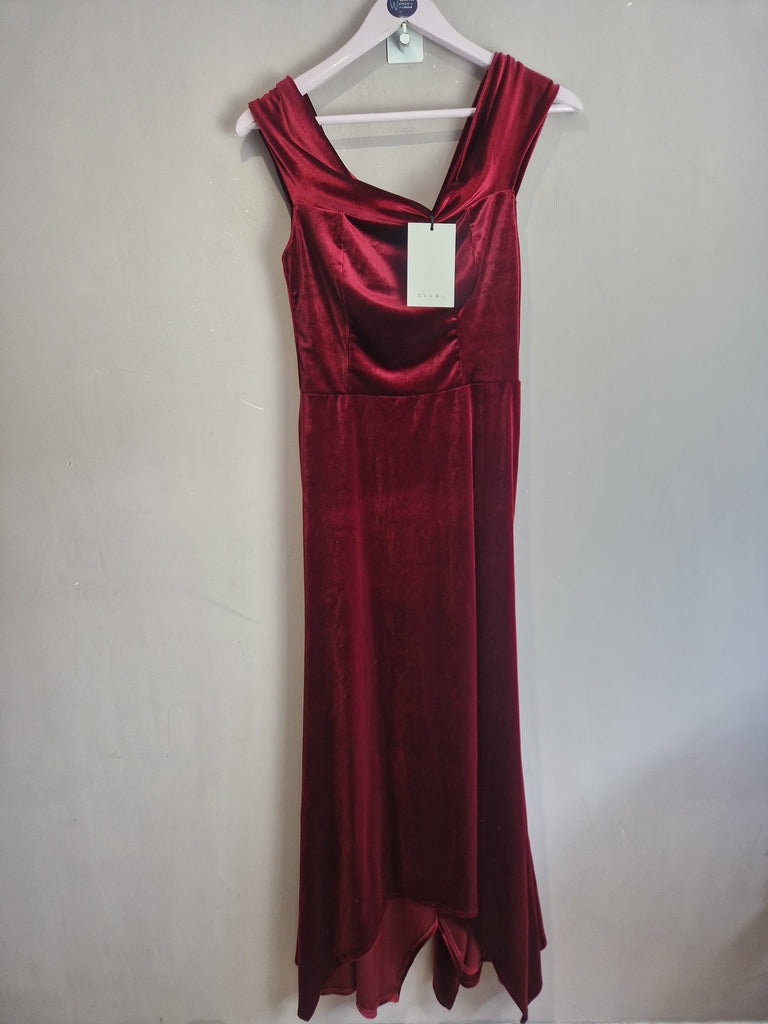 Club L London Halia Berry Velvet Bardot Maxi Dress - size 10