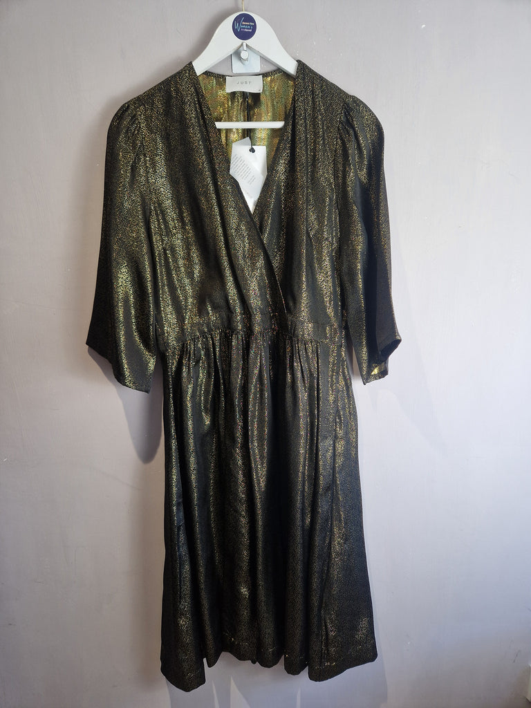 Just Gold Lurex silk blend Audrey dress NEW - Medium