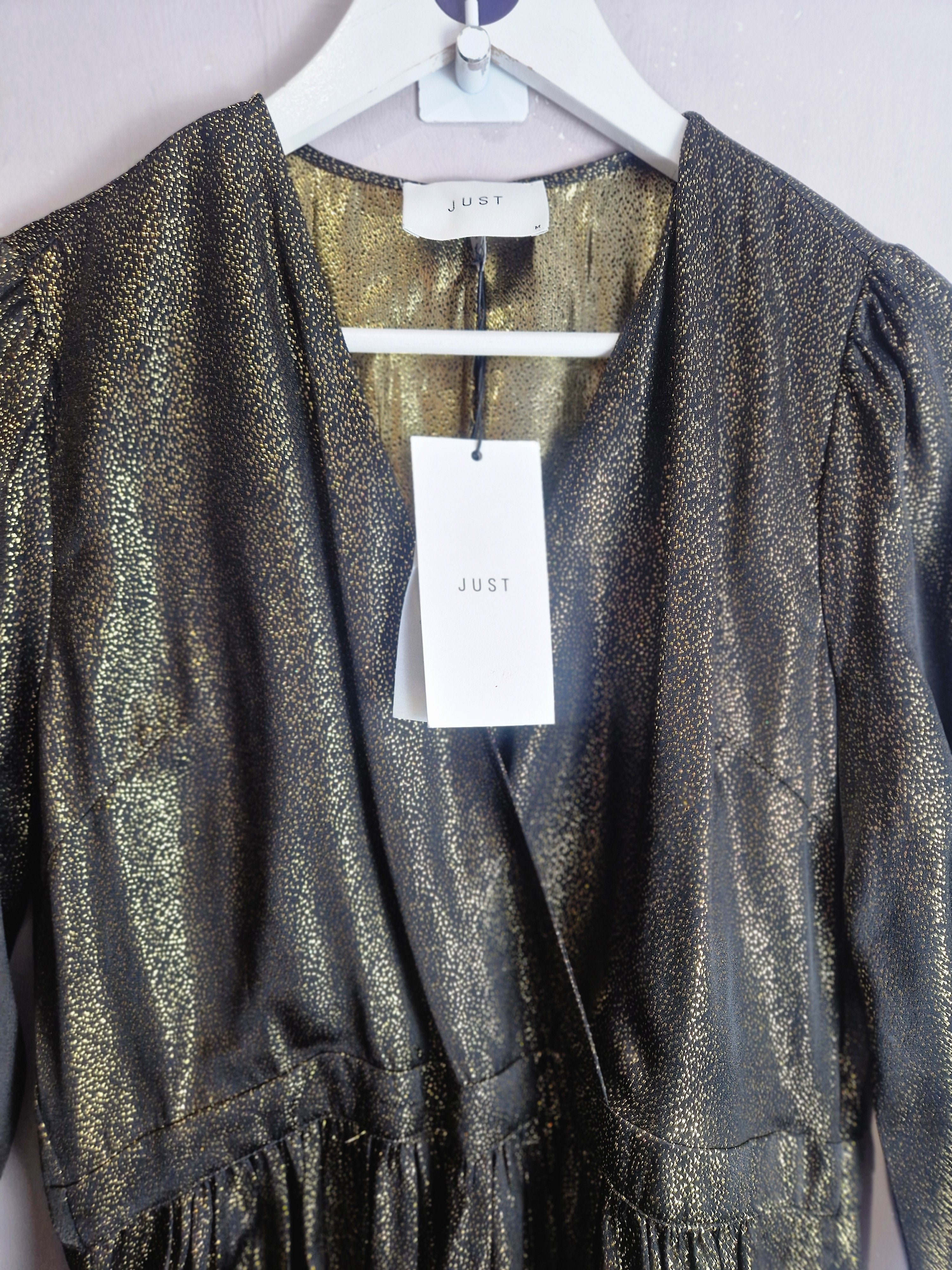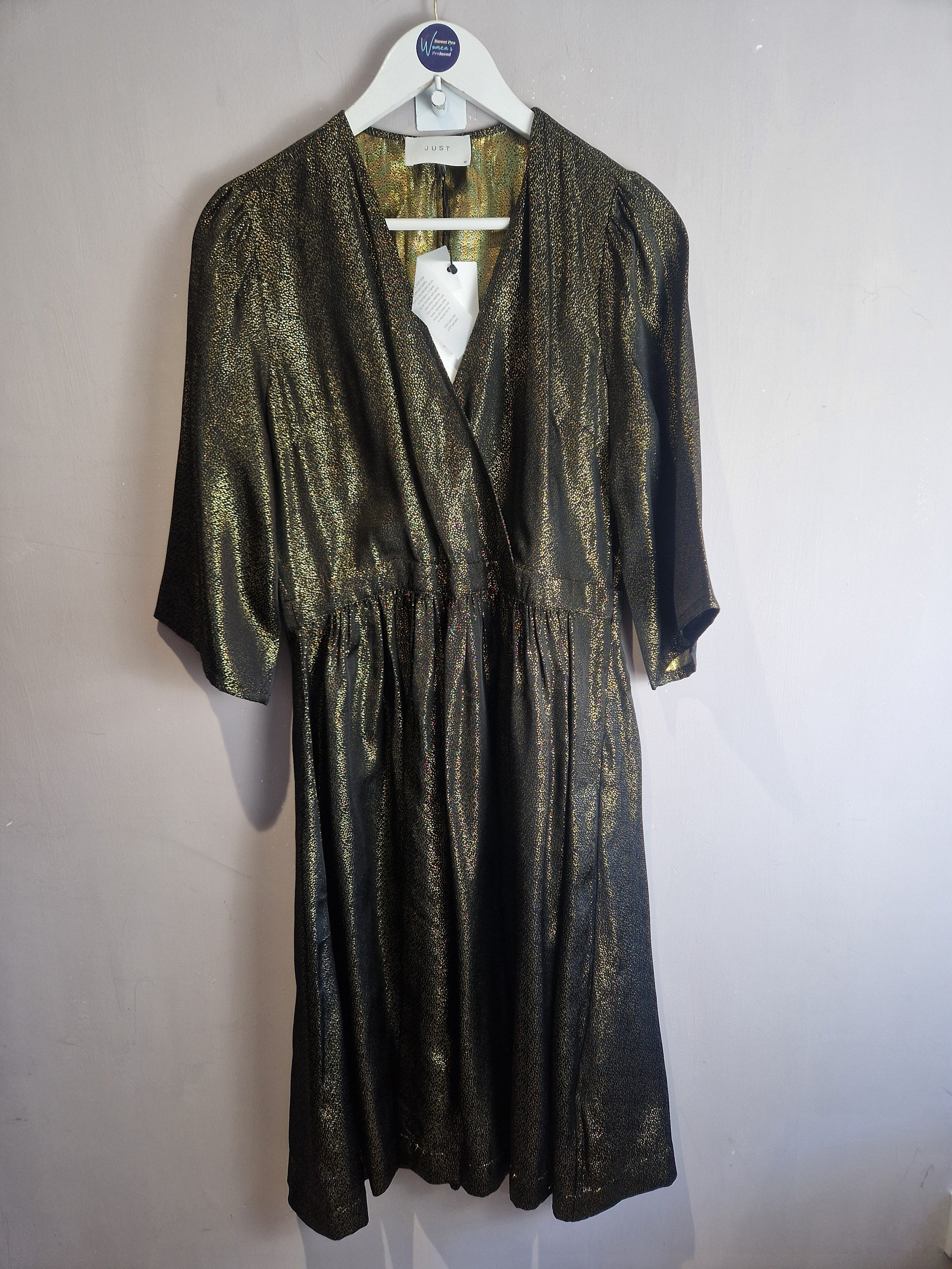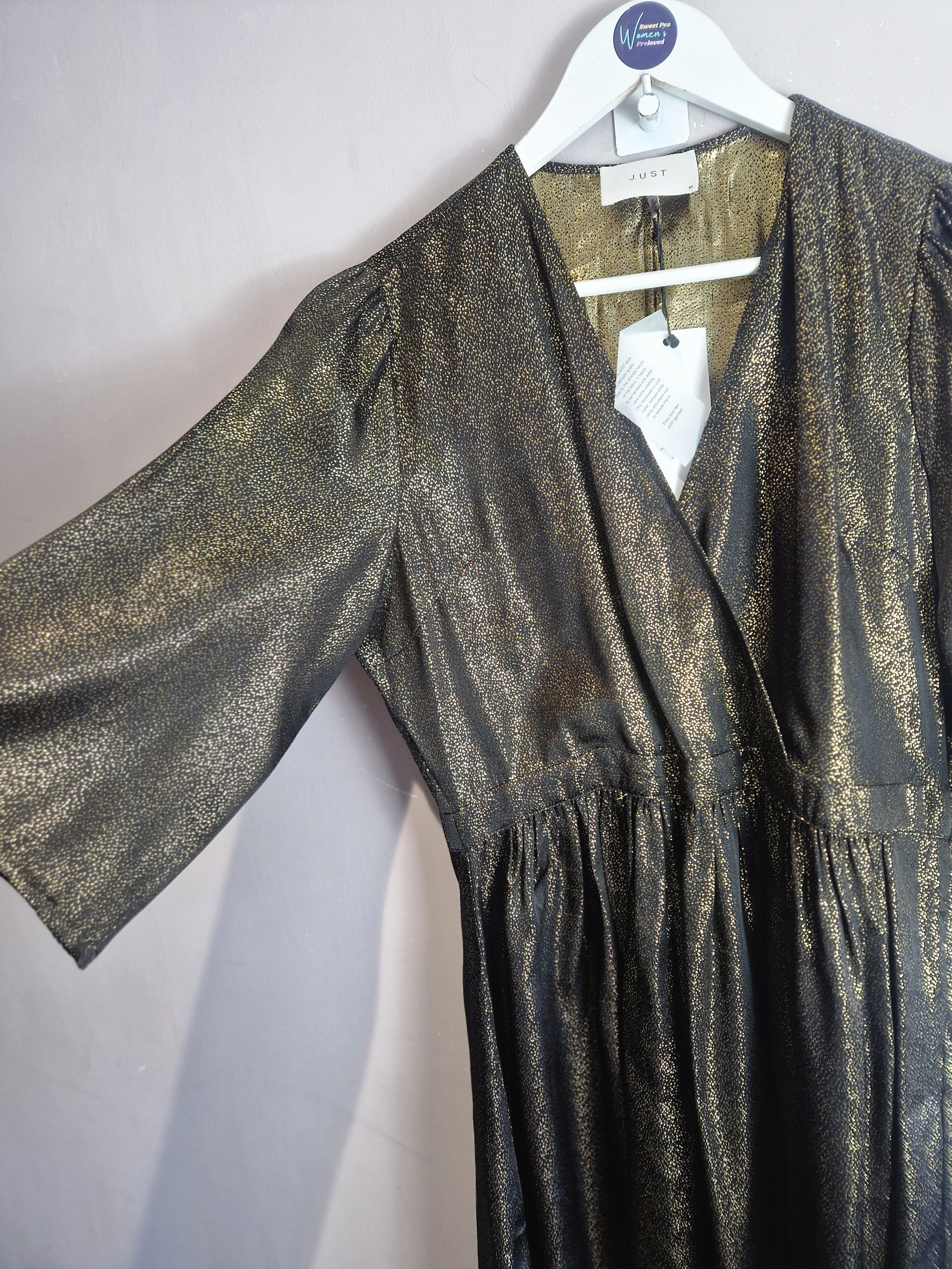Just Gold Lurex silk blend Audrey dress NEW - Medium is backordered and will ship as soon as it is back in stock.