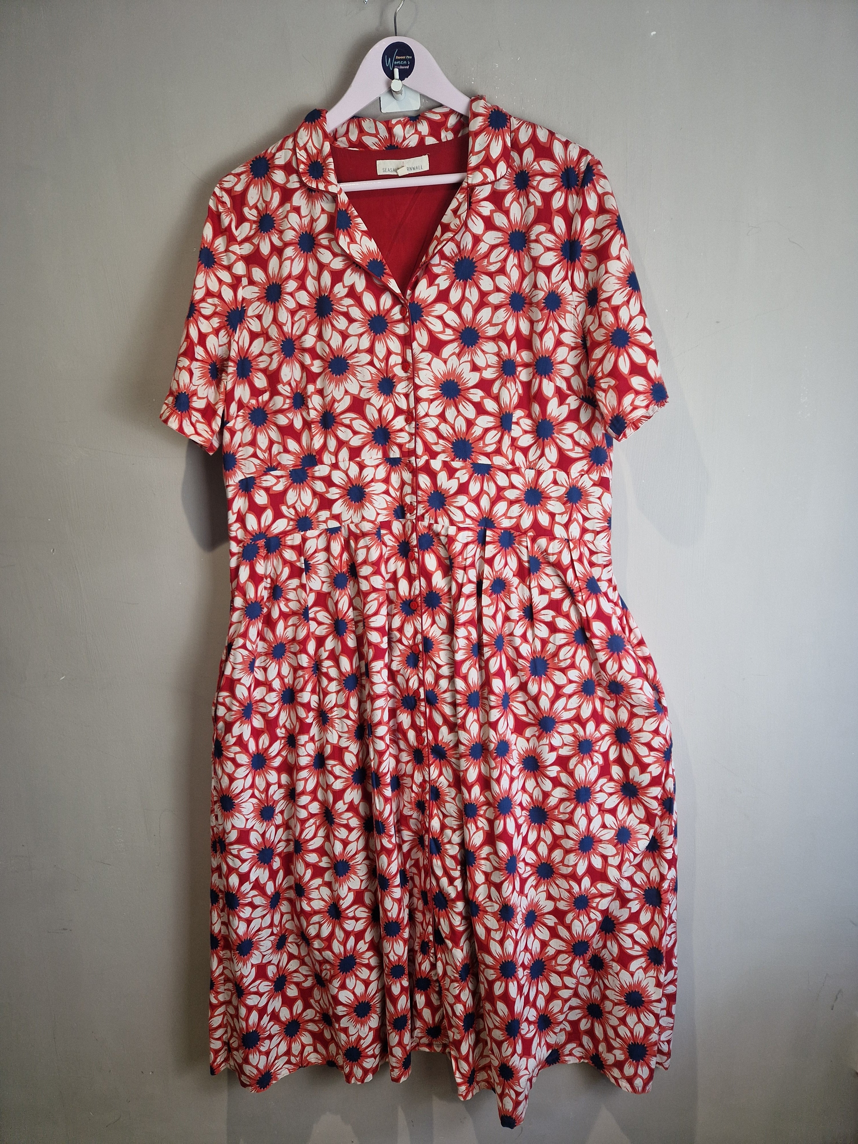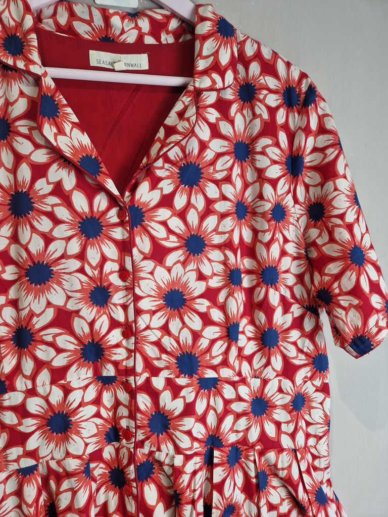 Seasalt red floral Charlotte dress - size 18 is backordered and will ship as soon as it is back in stock.