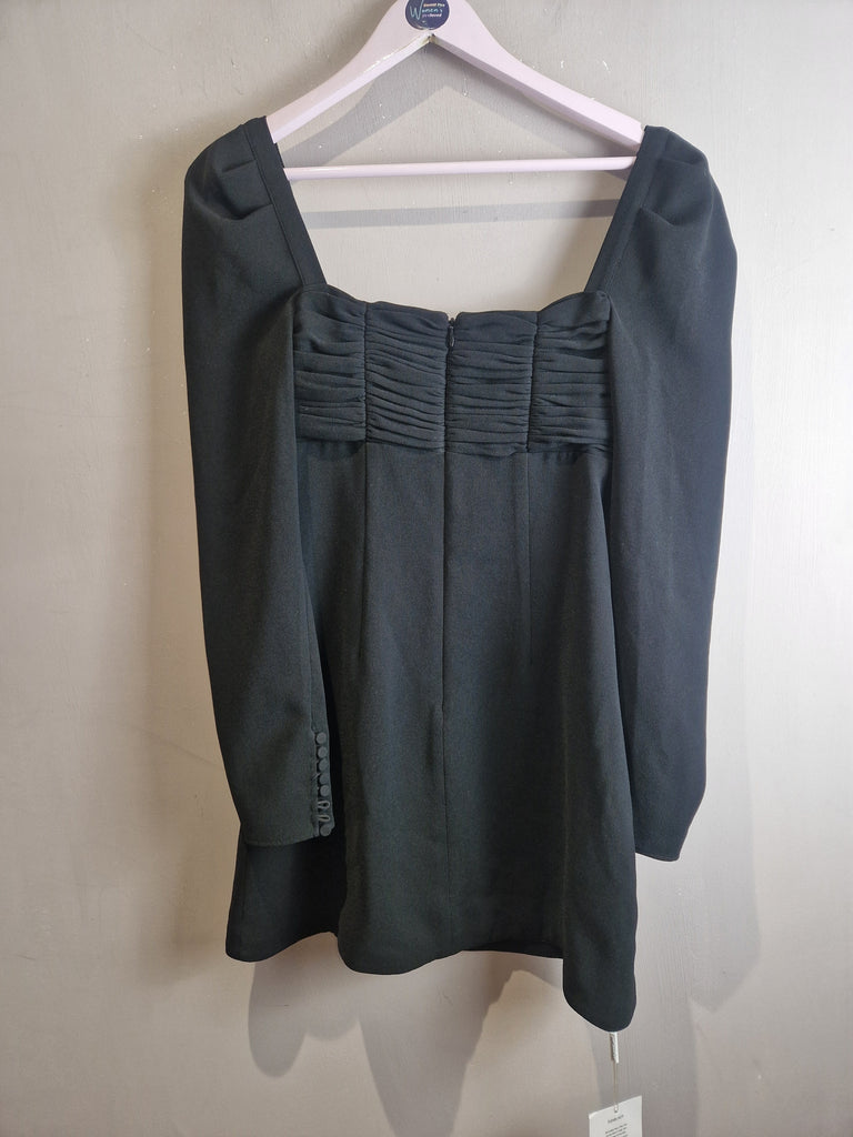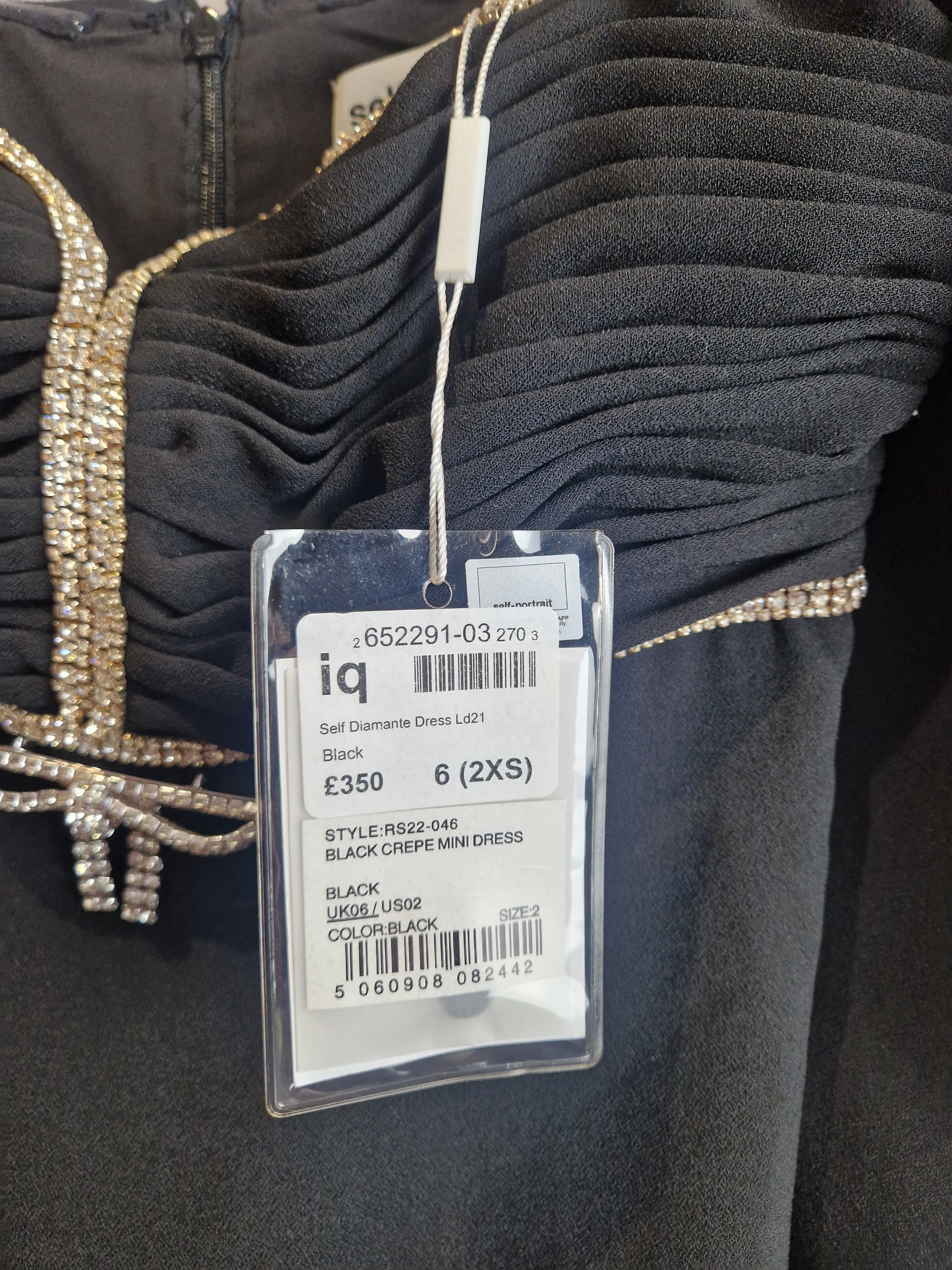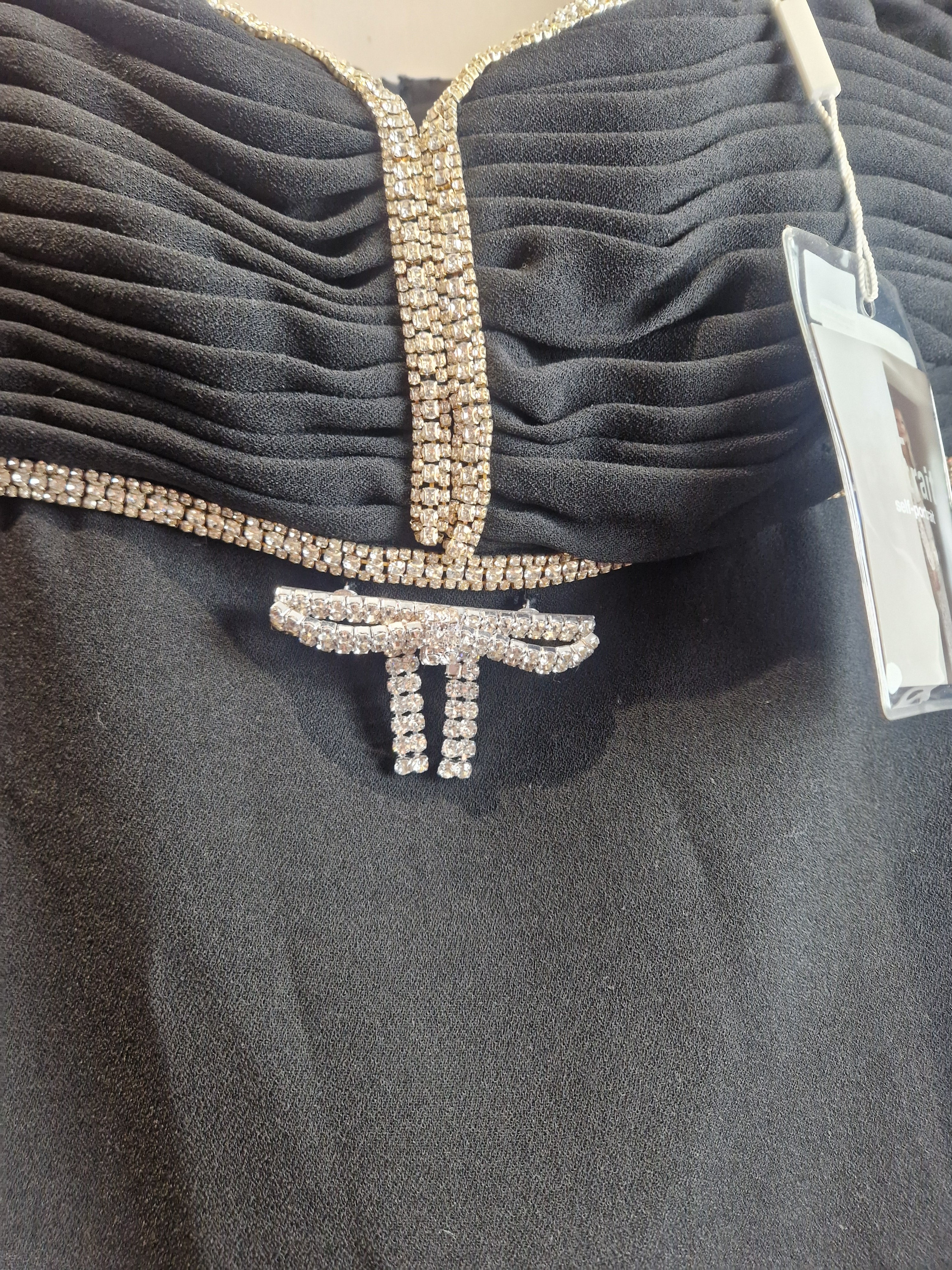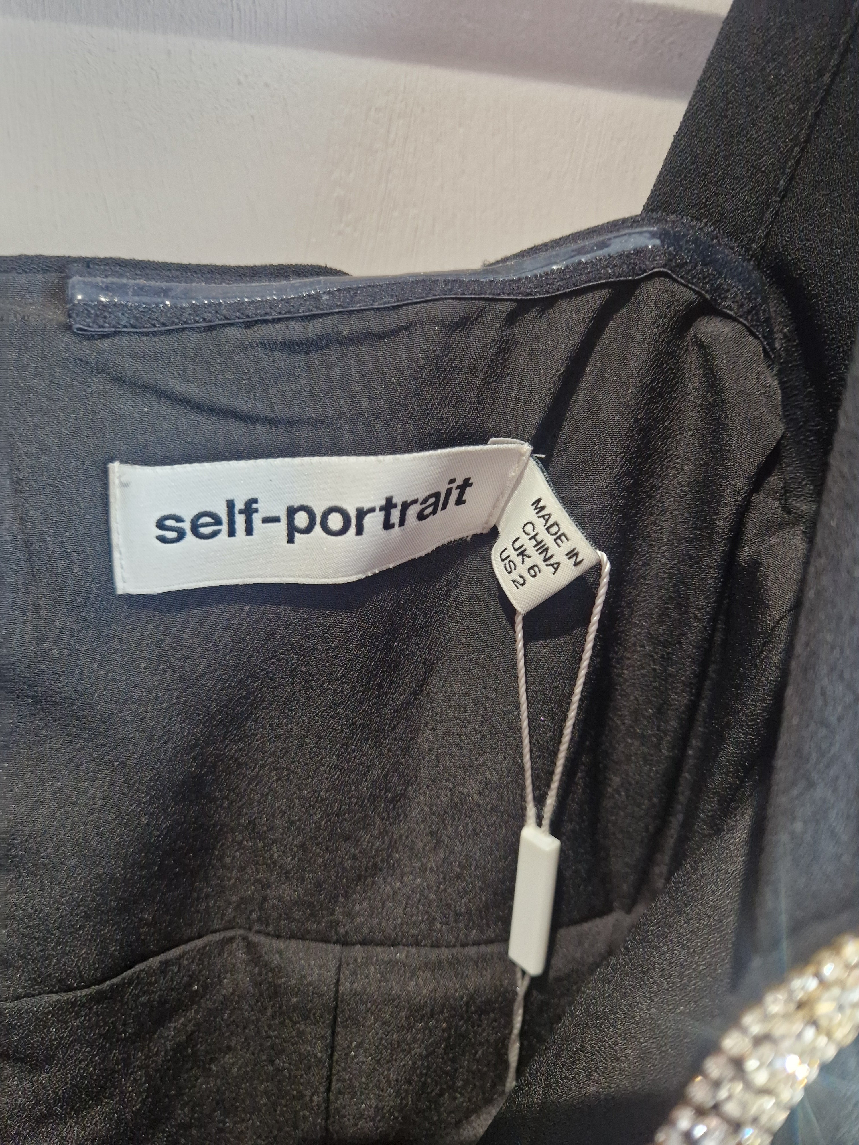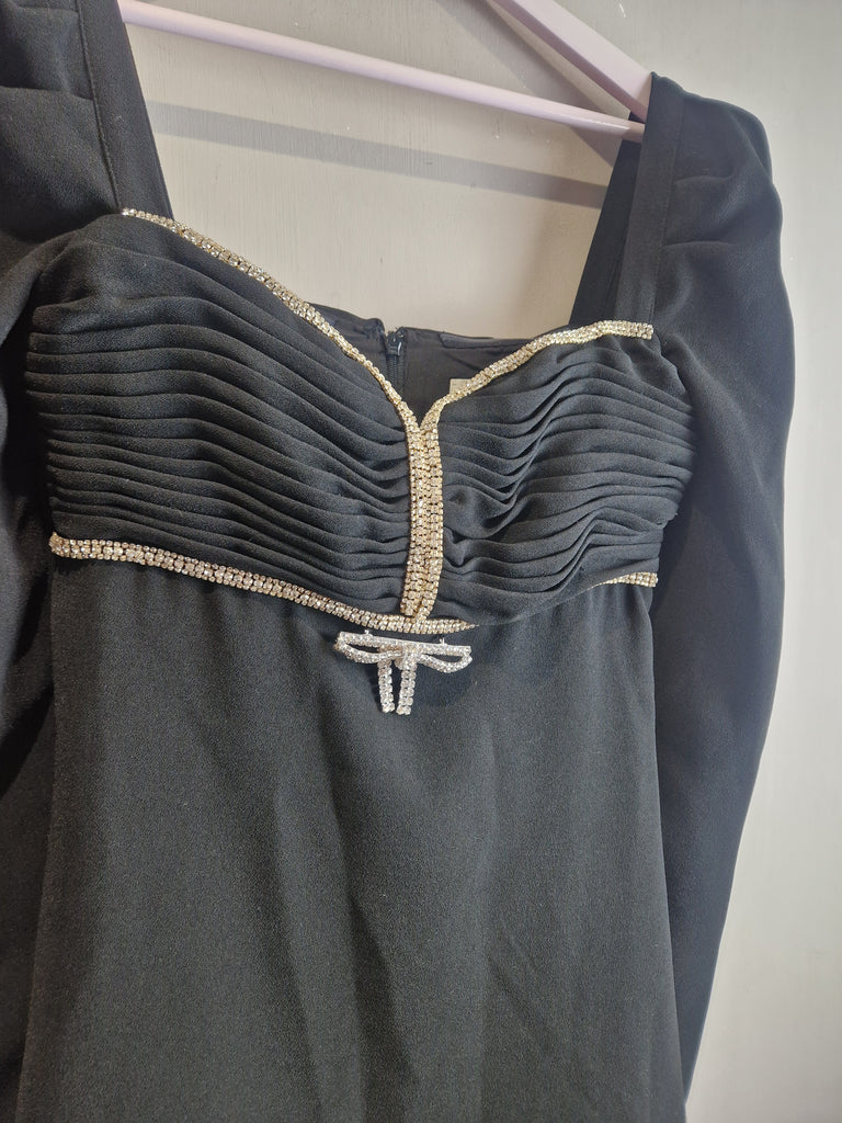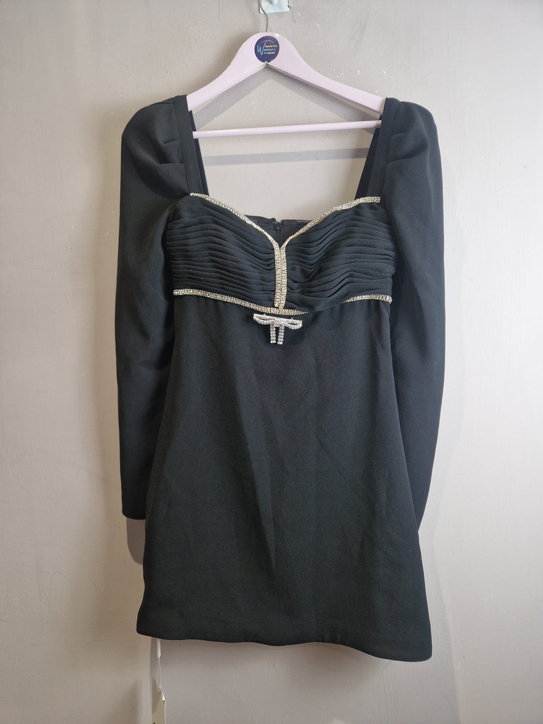 Self Portrait black crepe diamante bow mini dress - size 6