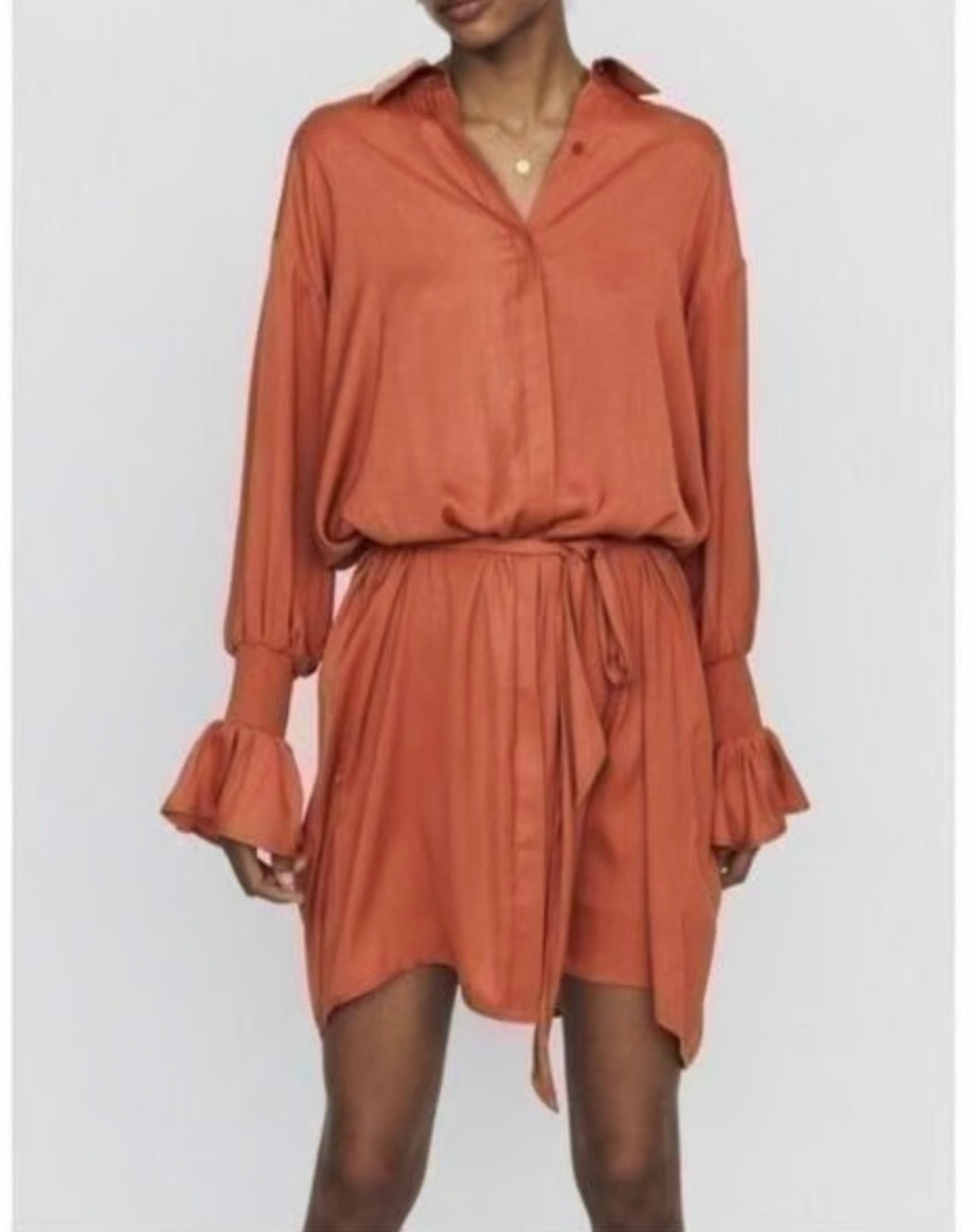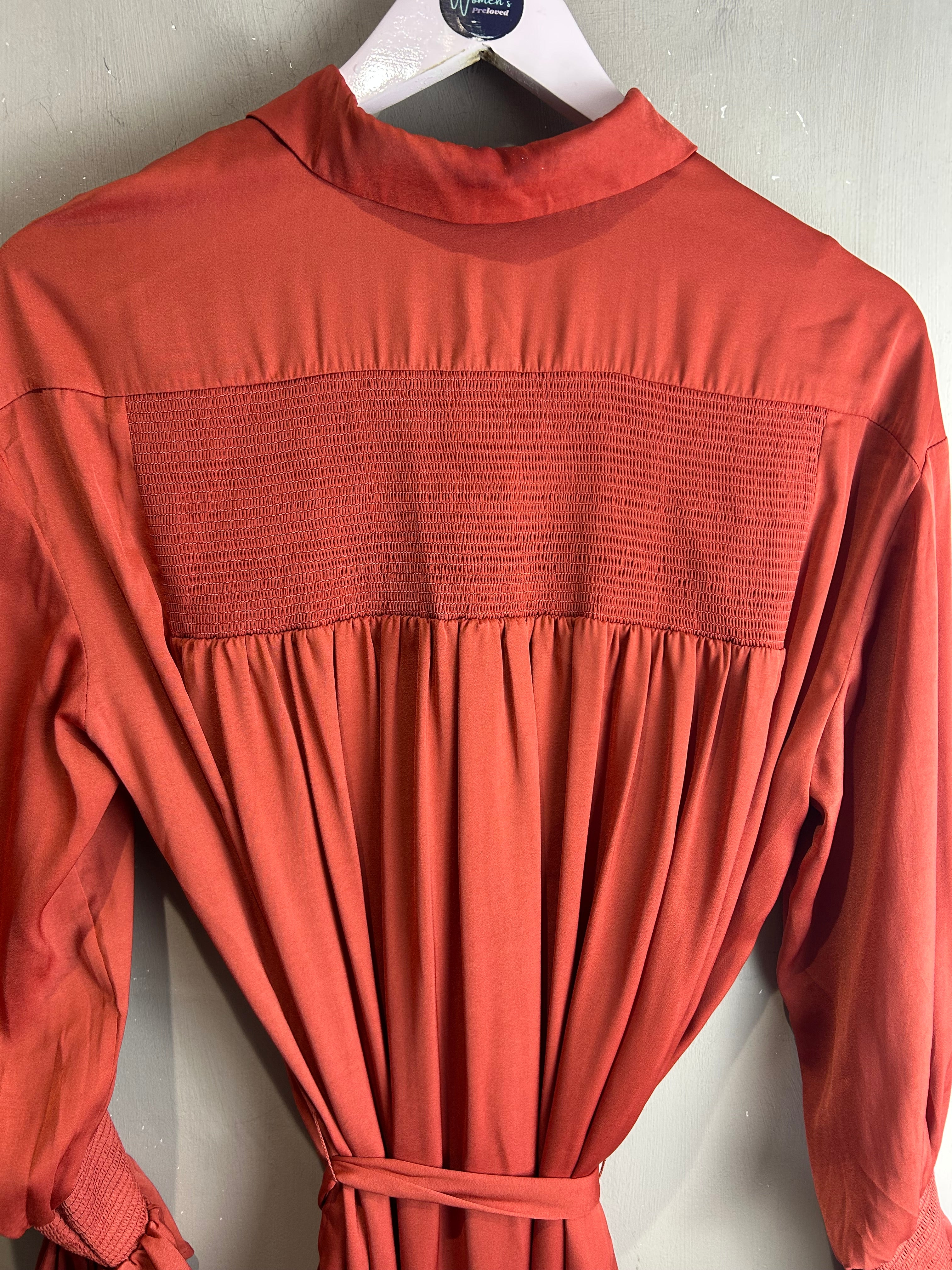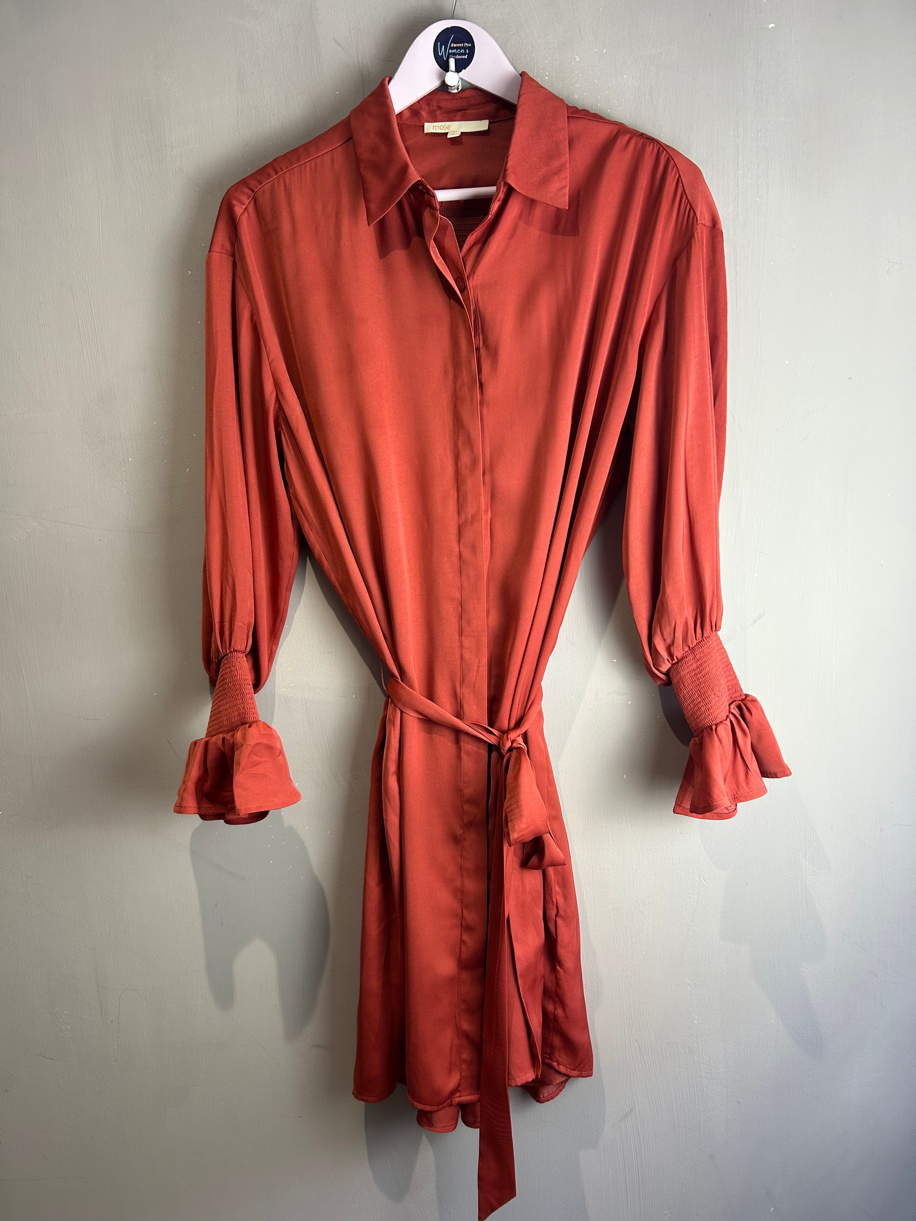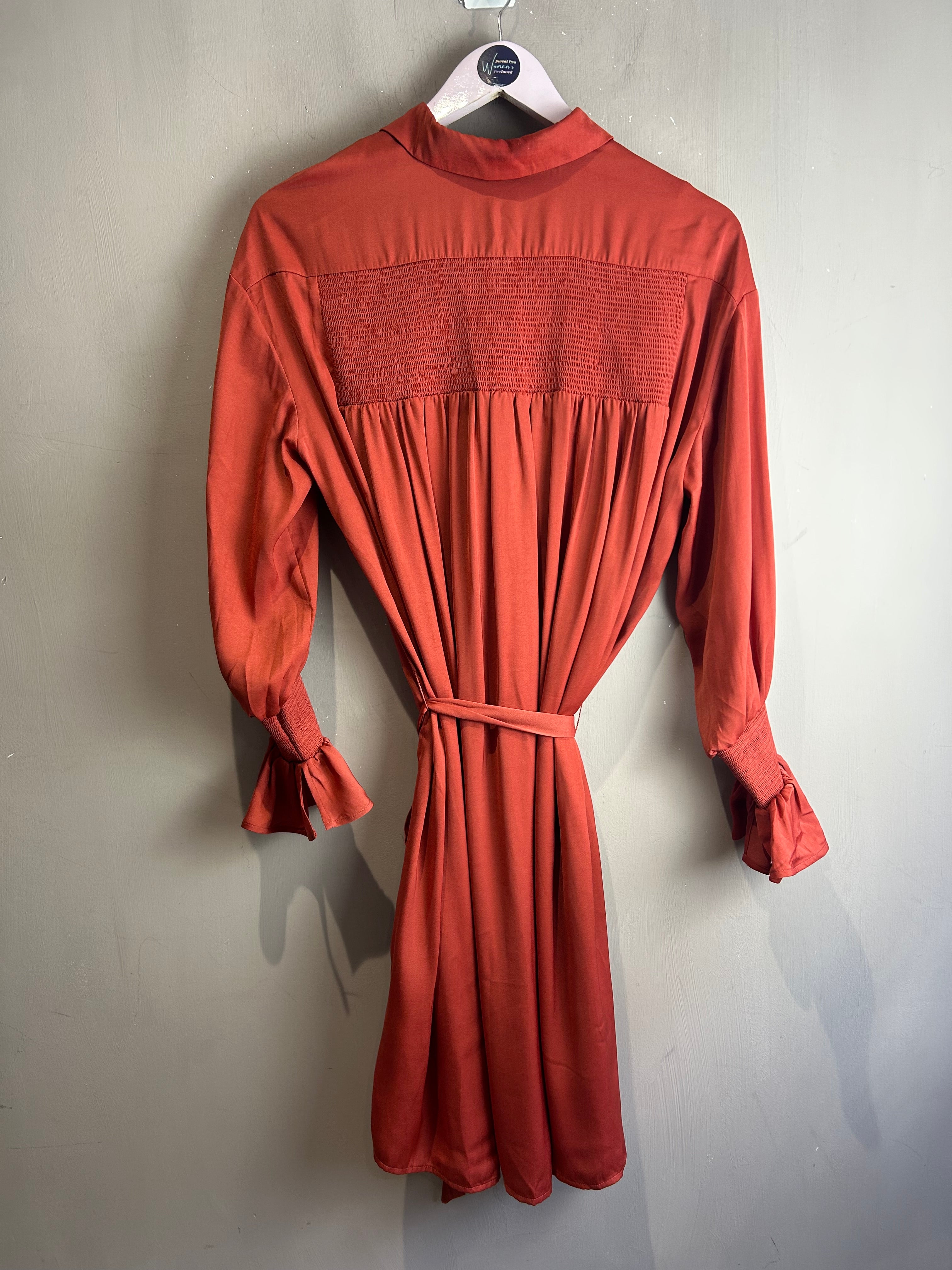 Maje Terracotta satin shirt dress - size 1 (8) is backordered and will ship as soon as it is back in stock.